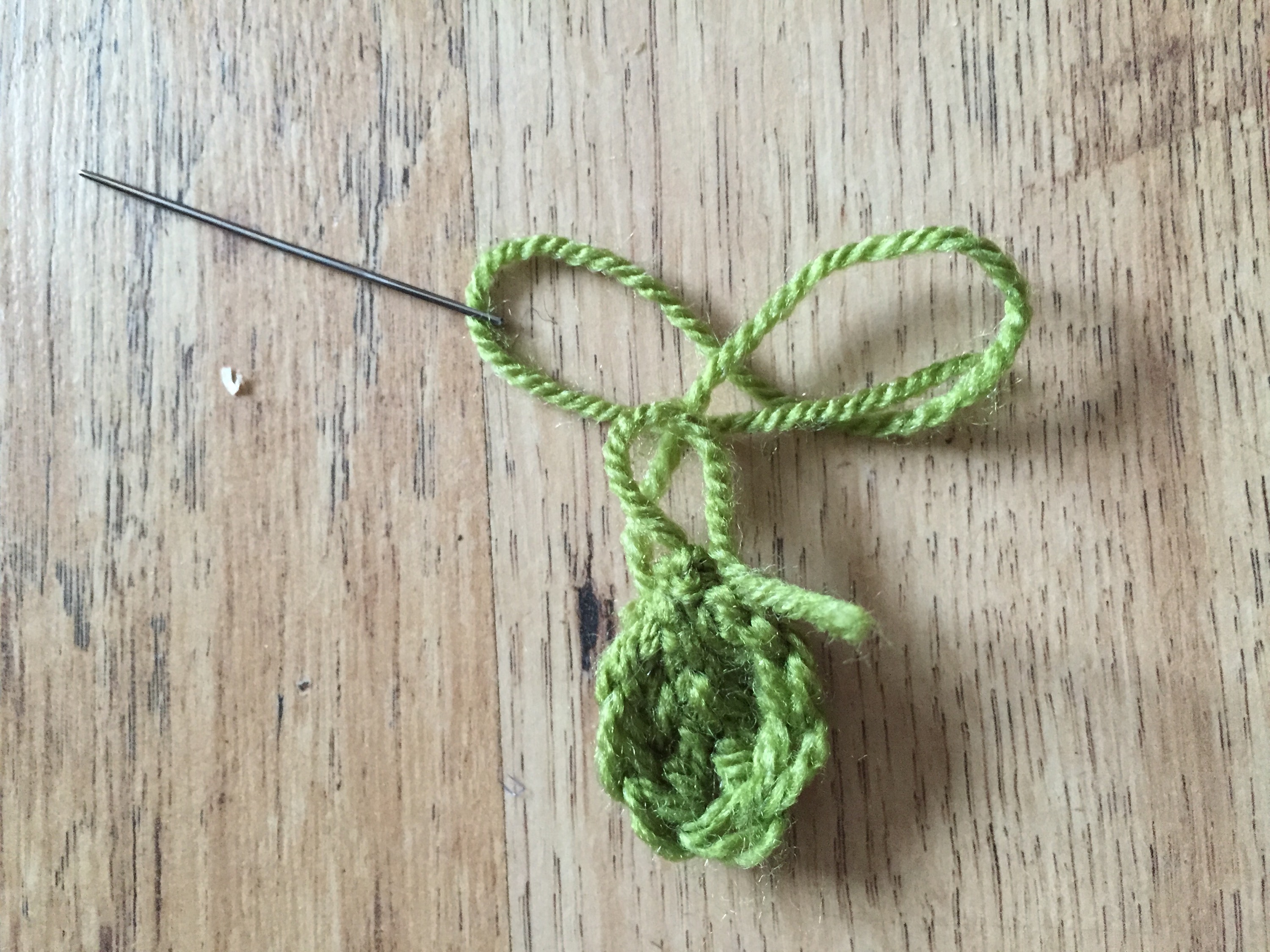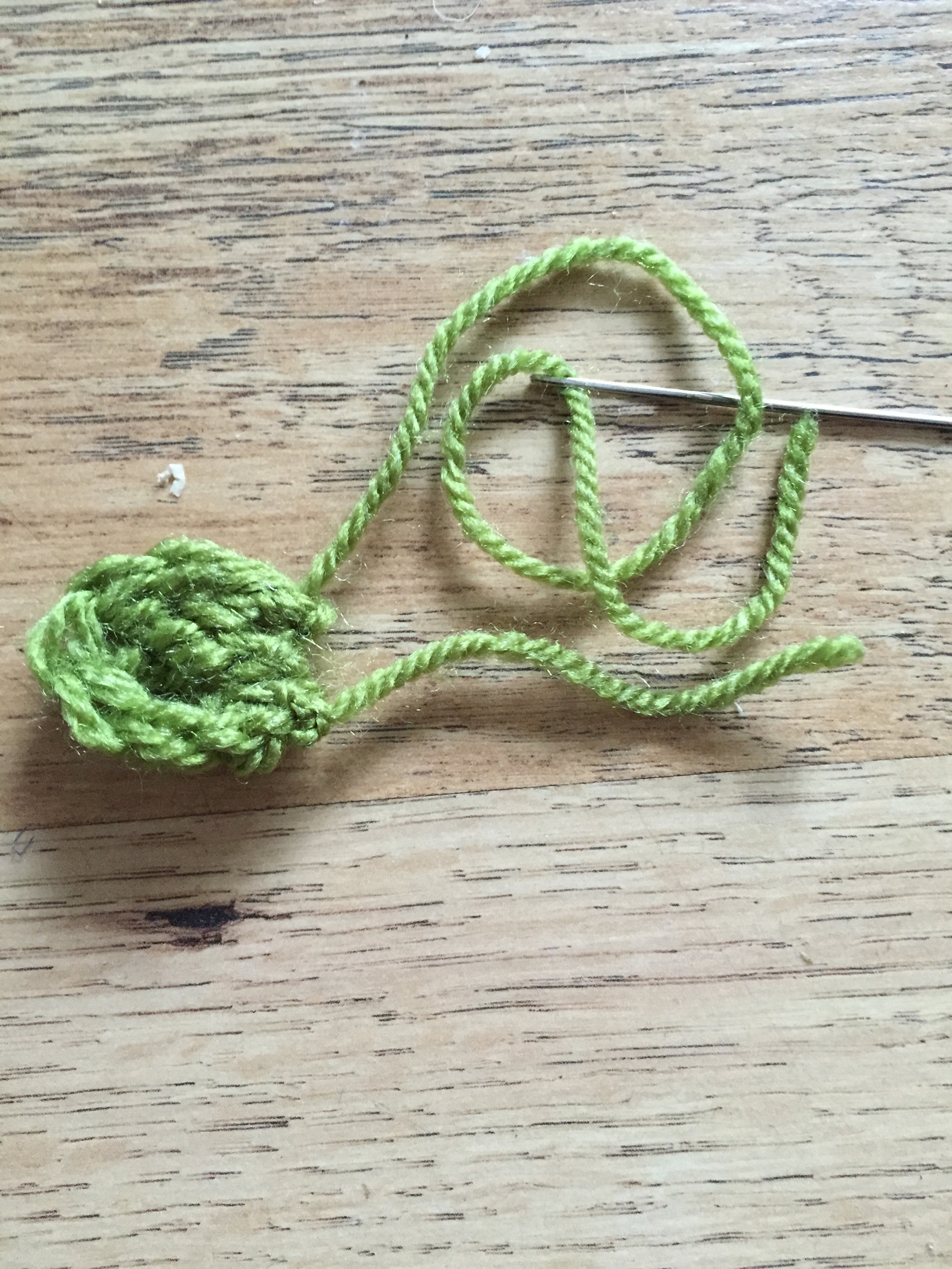 Stitching as you go, starting from the starting end loosely coil the trebled row around to make the flower.