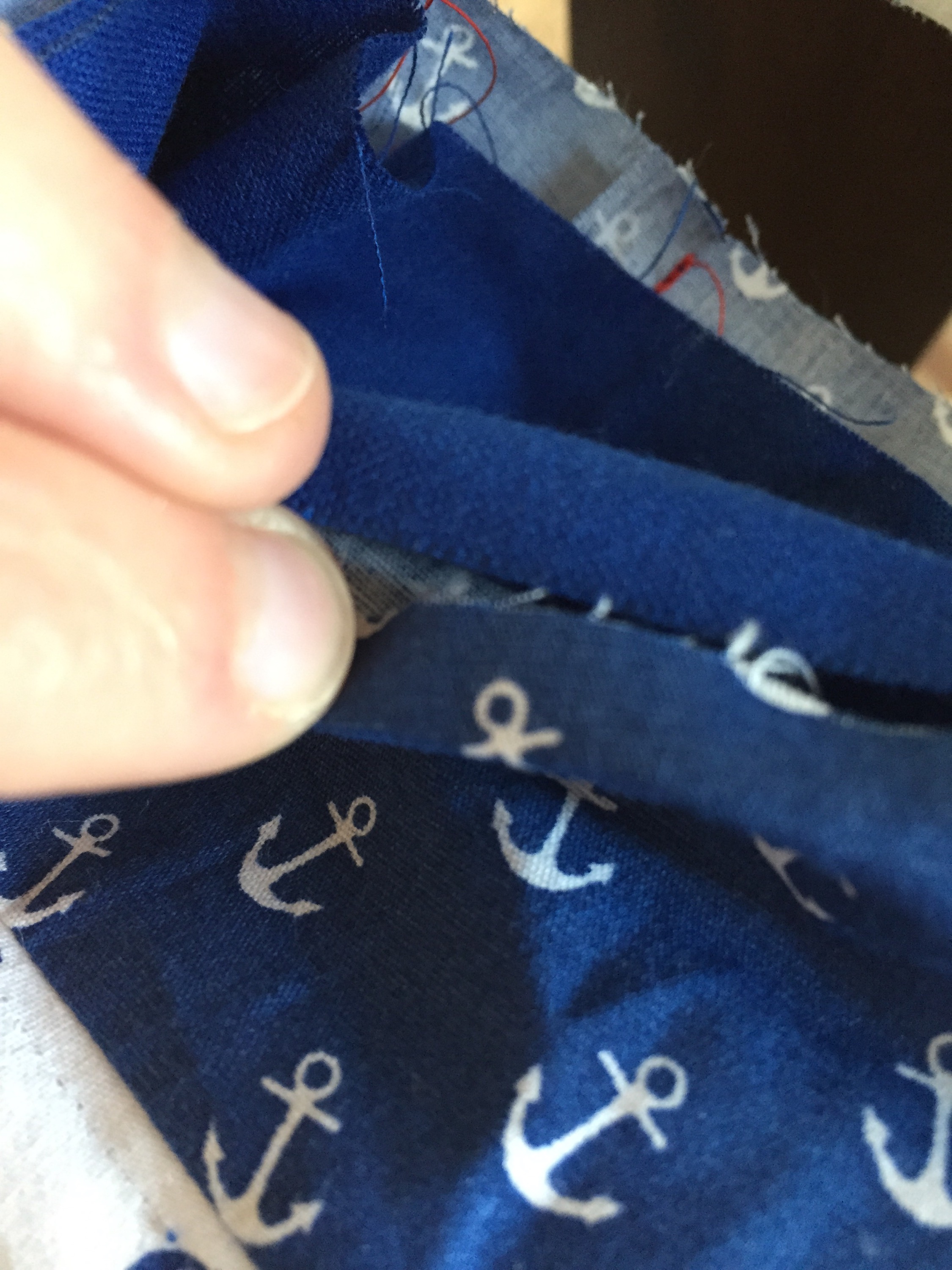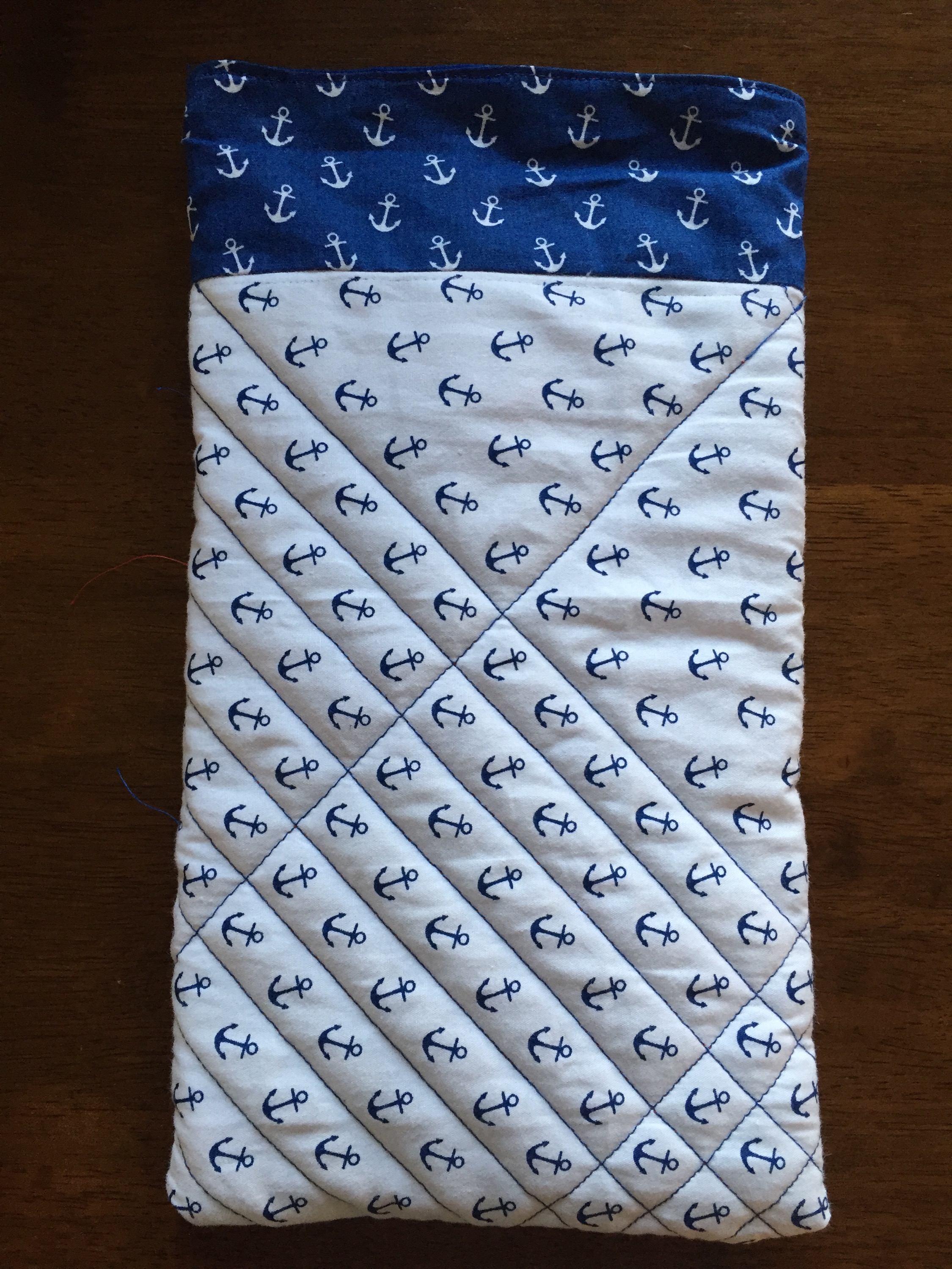 I have been trying to use up some of my fabric scraps recently and while looking through my pile of scraps I stumbled upon some spare anchor themed fabric by The Cotton Craft Company, I have been wanting to make a quilted iPad/tablet case for a while and decided to use this fabric to make one. This is a great way to use up leftover fabric – you could even join multiple pieces together to get the size of fabric you want and make a patchwork front.