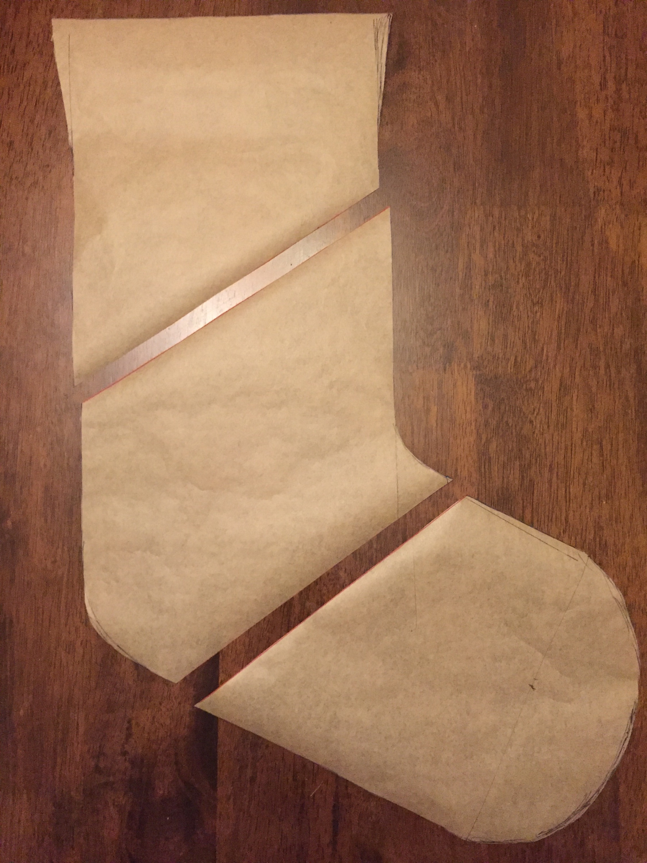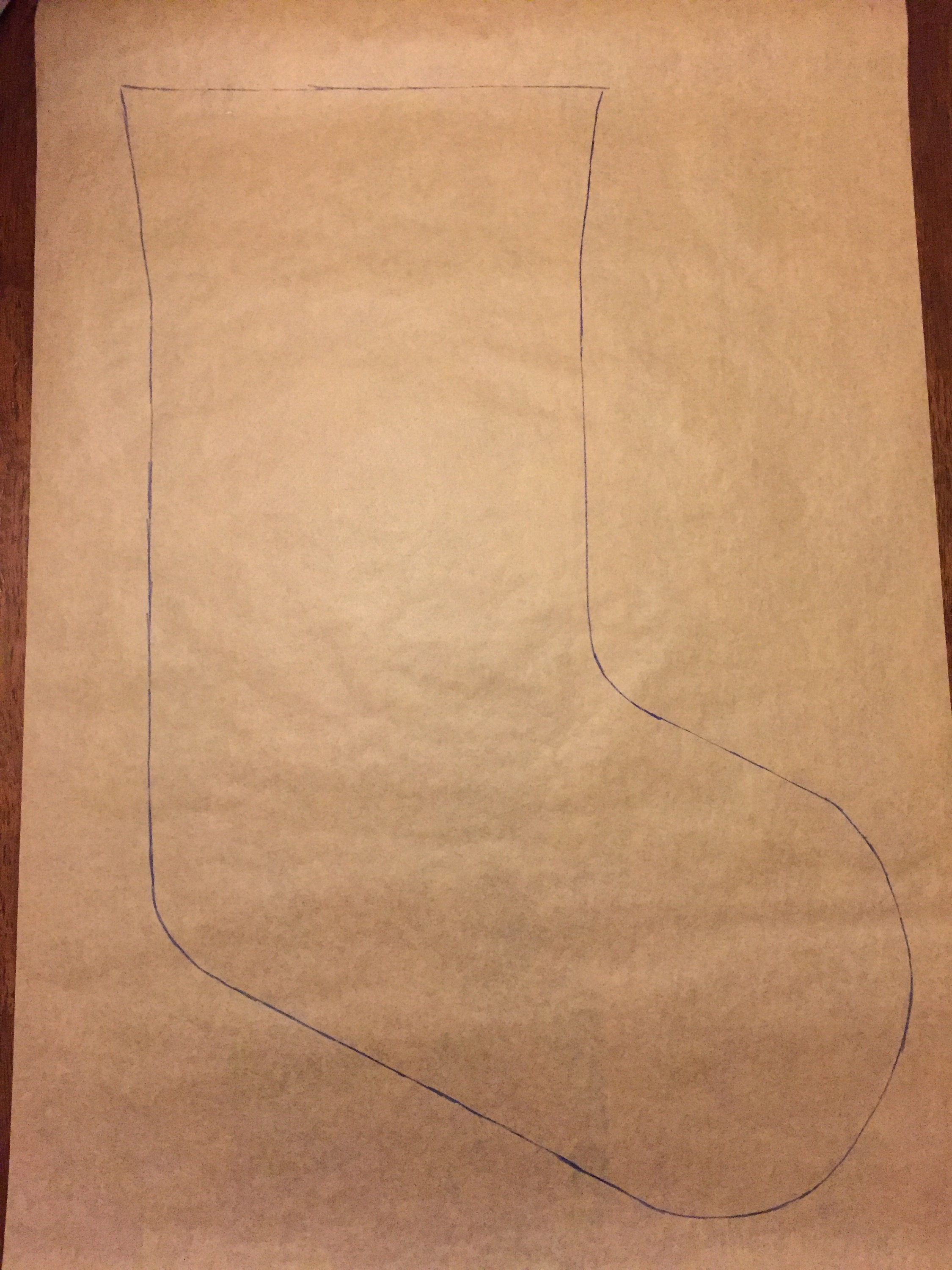 Draw a pattern outline for your stocking, making it as big or as small as you like. I fluted mine out a bit at the top as I like it wider at the top for when folding back.