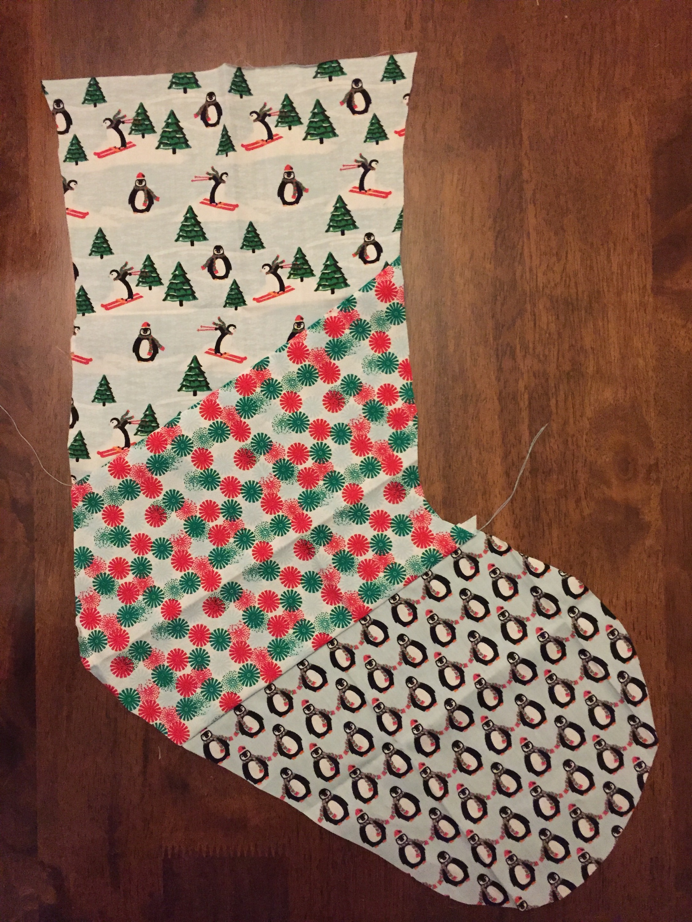 Patchwork Christmas Stocking – Sewing the front and back together: