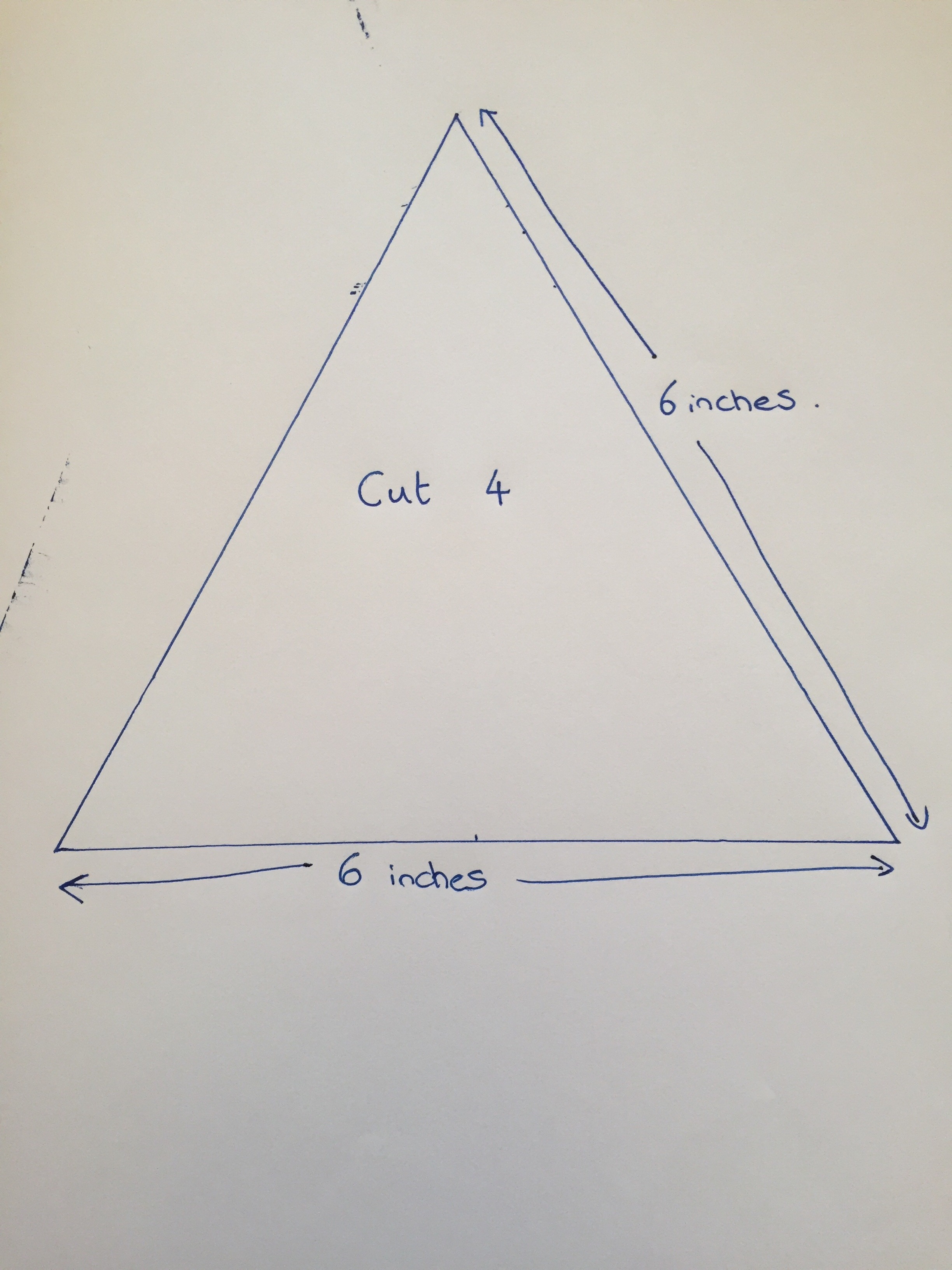 - Make a triangle template for the chickens. I opted to use a triangle 6×6 inches (15x15cm) but it can be any size you choose.