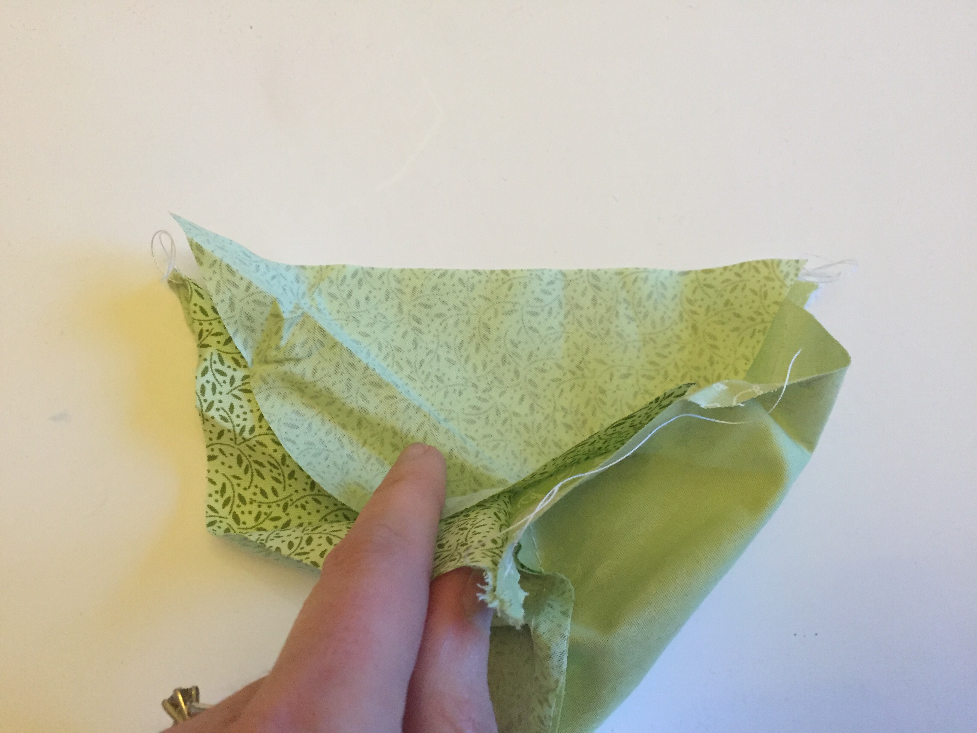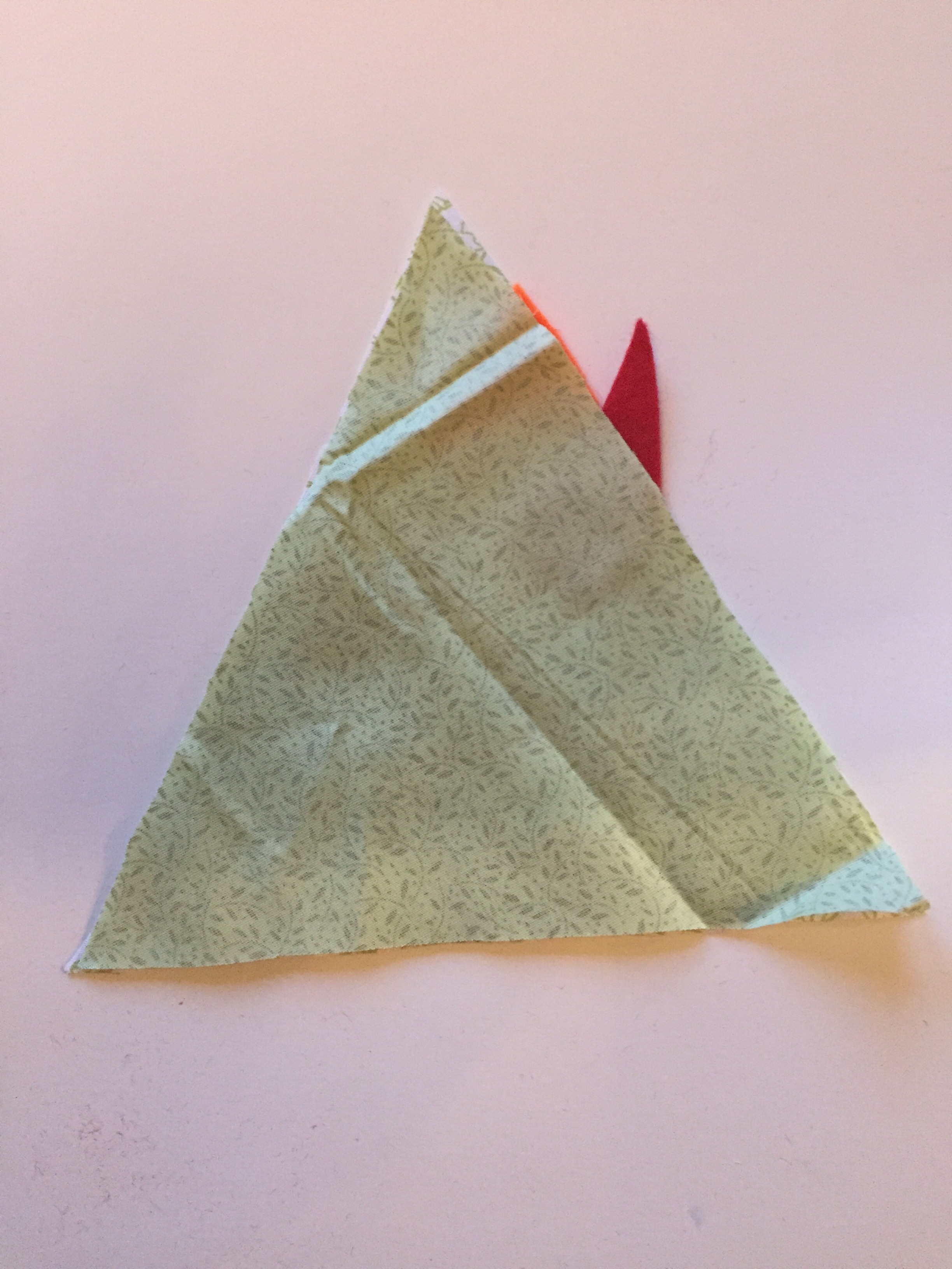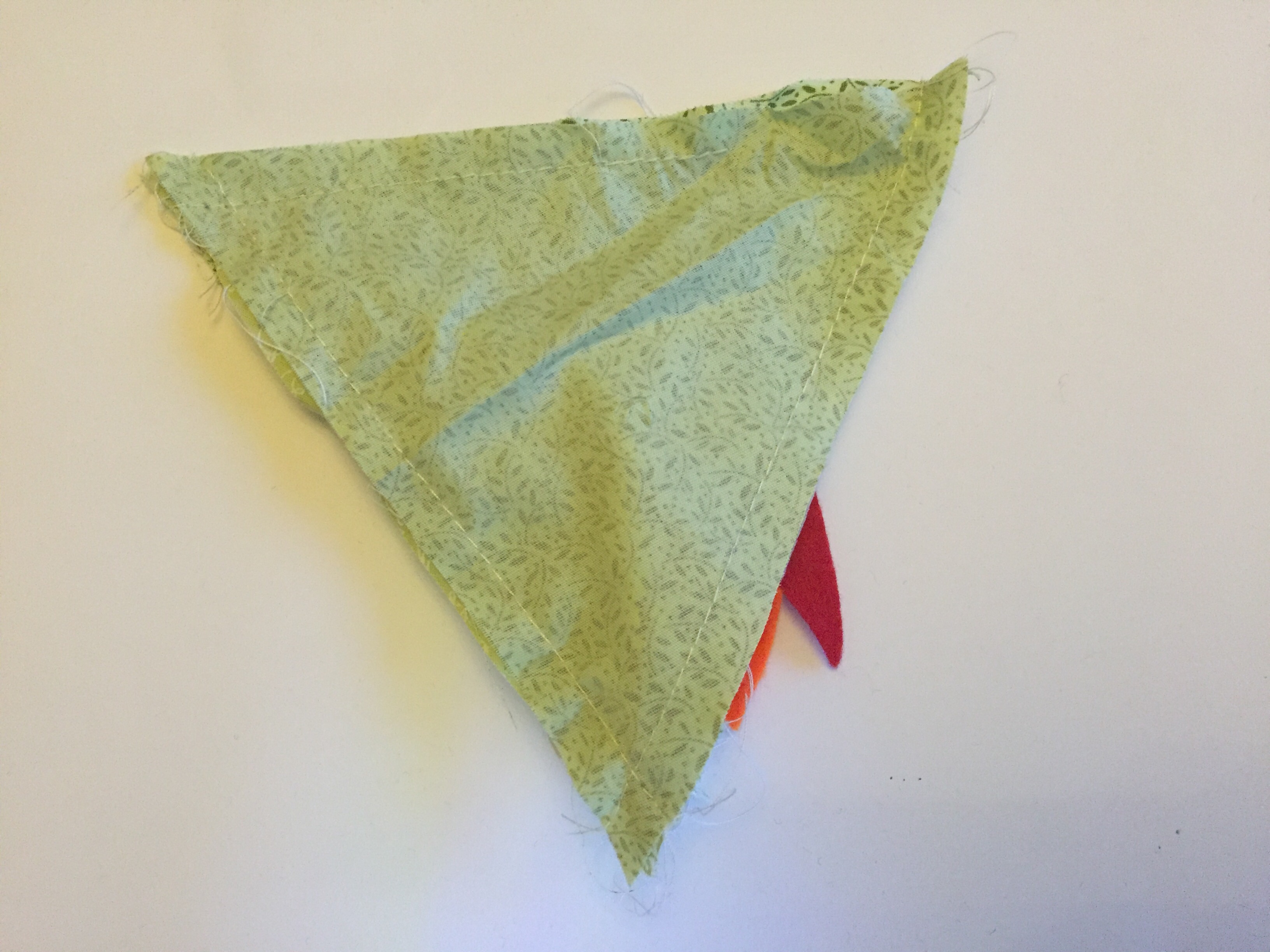 - Place another triangle right sides together on top and sew down the seam.