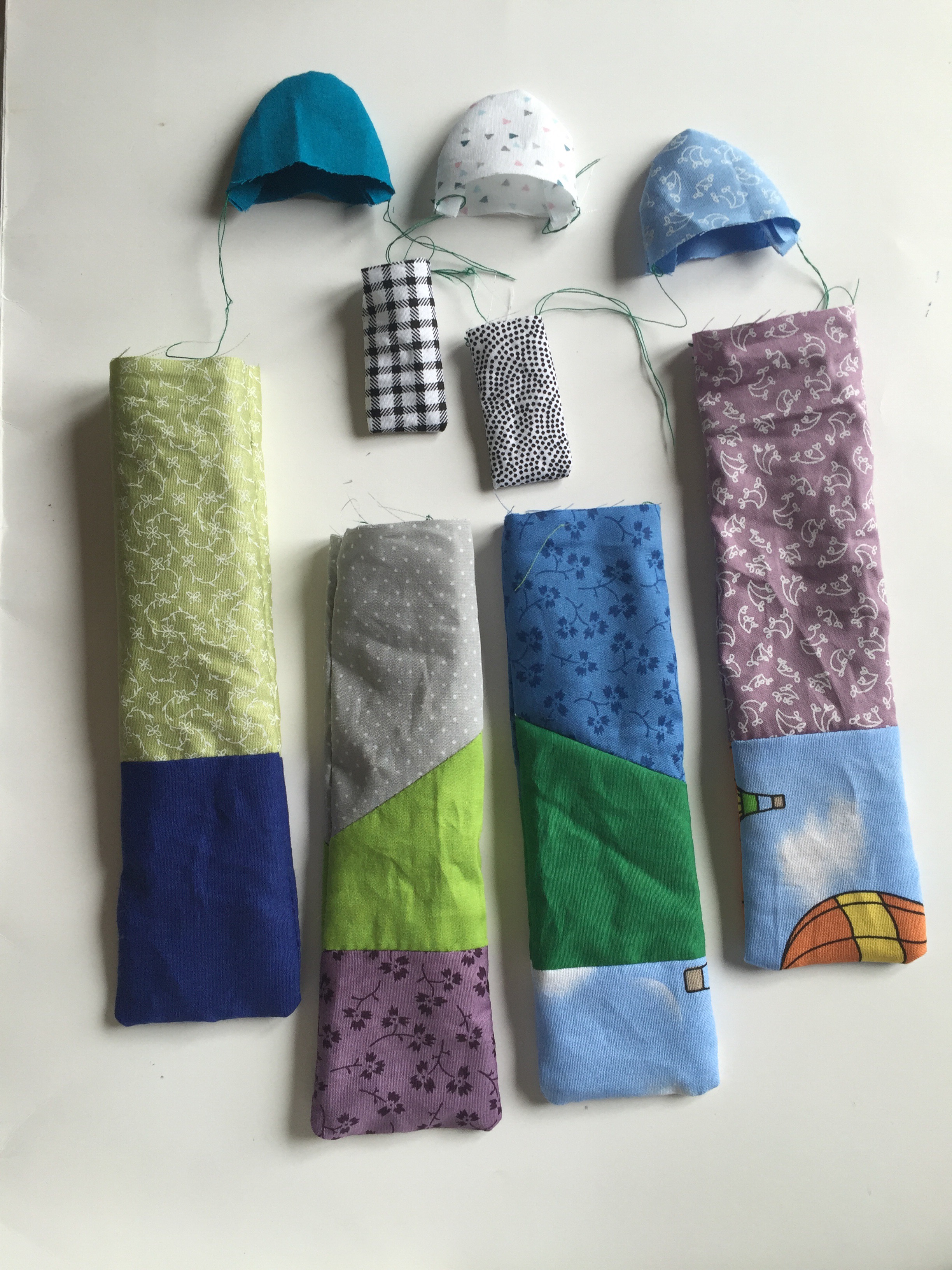 - Using whatever fabric scraps you have cut out the fabrics for each body part, the more random the better!
