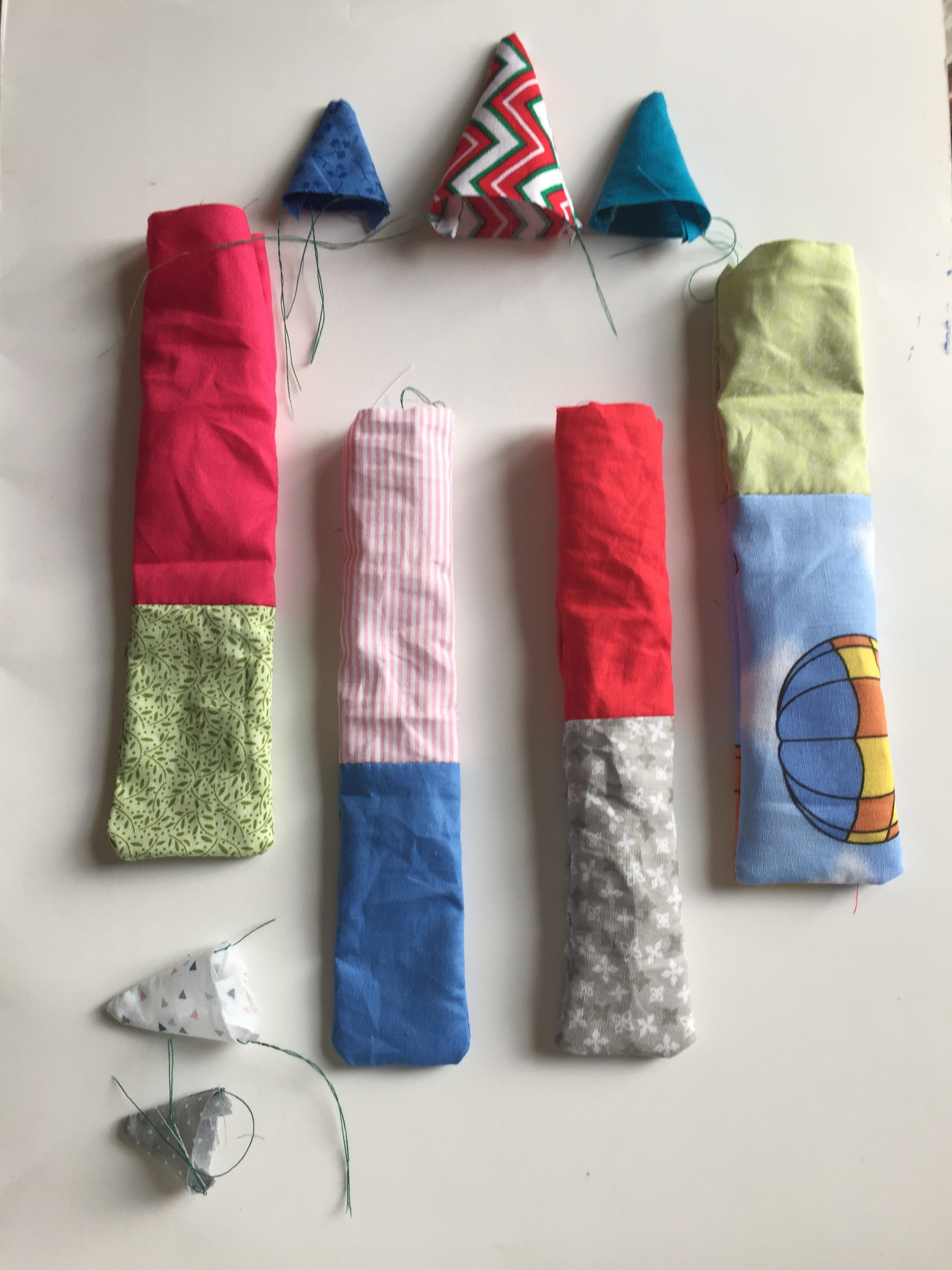 - Head and body details (spikes etc.): place the fabric pieces right sides together and sew around the edges leaving bottom edge unsewn, turn the right way and stuff.