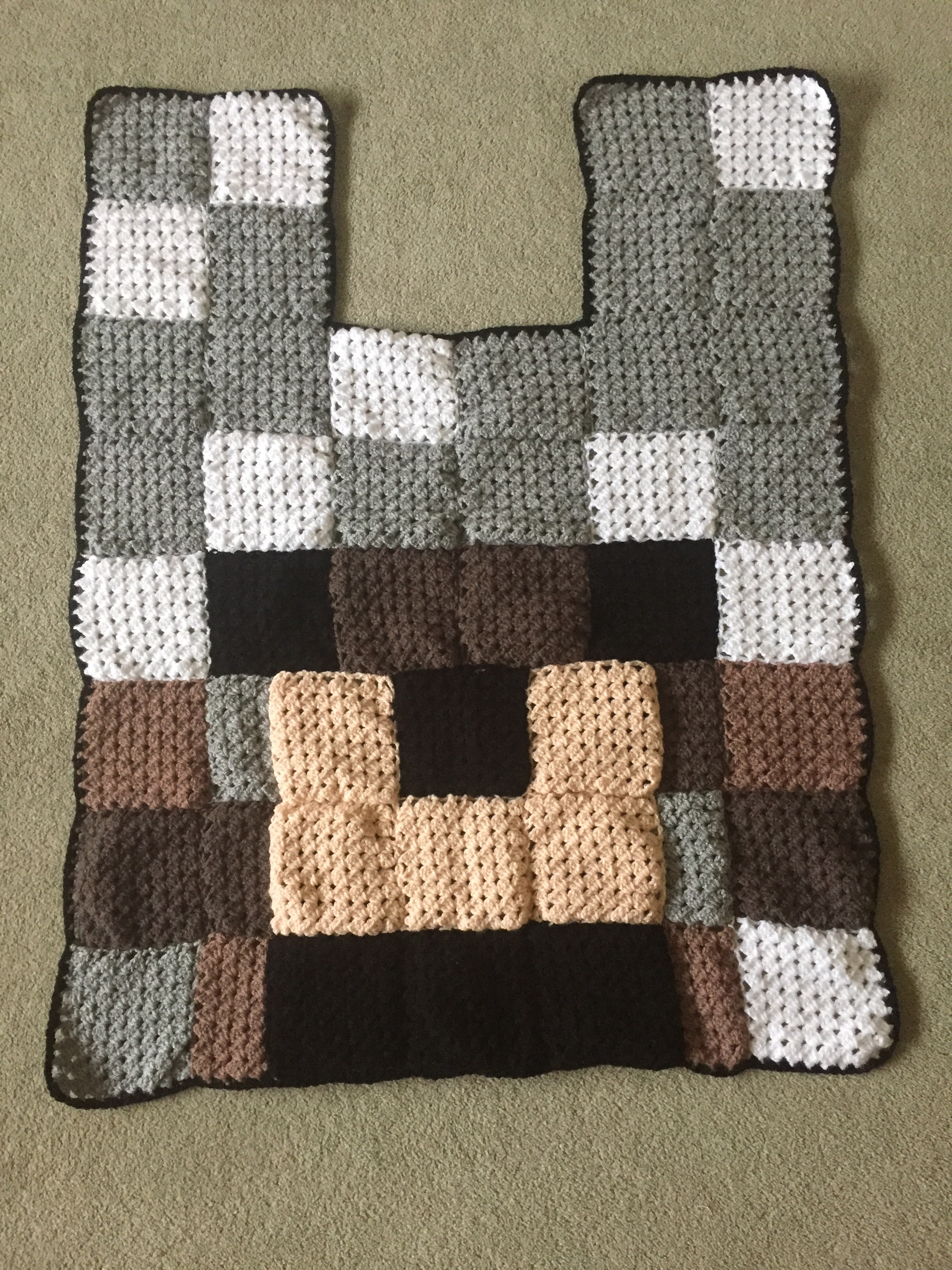 After a bit of a false start I have completed another granny square Minecraft blanket, this time a wolf!