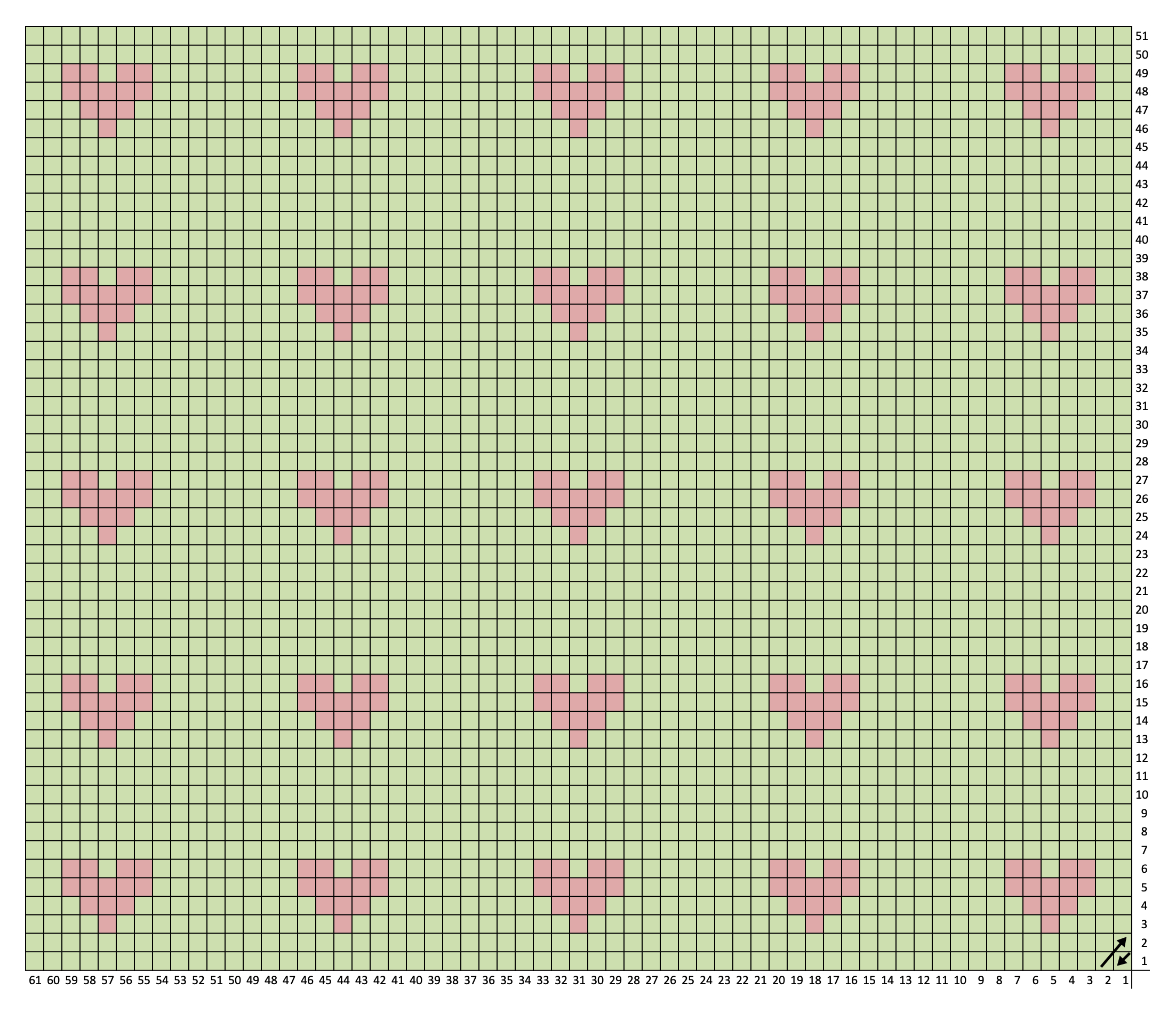 I dug out some graph paper – it’s amazing what you can find at the back of a craft cupboard and gathered some colouring pencils and set about drawing a pattern out. I didn’t want to do anything too crazy so decided to go with a repeating heart pattern mini blanket – can never have too many hearts about.