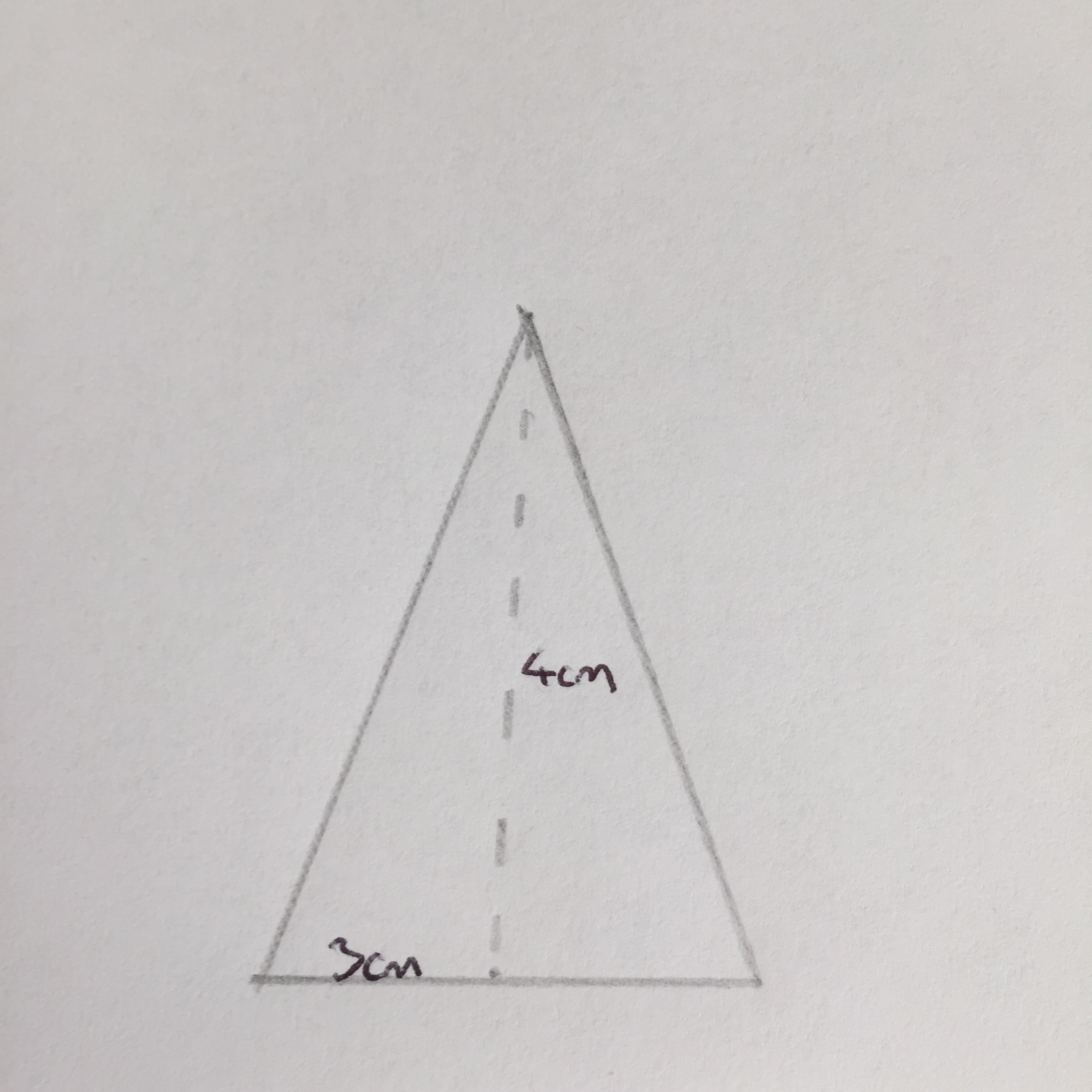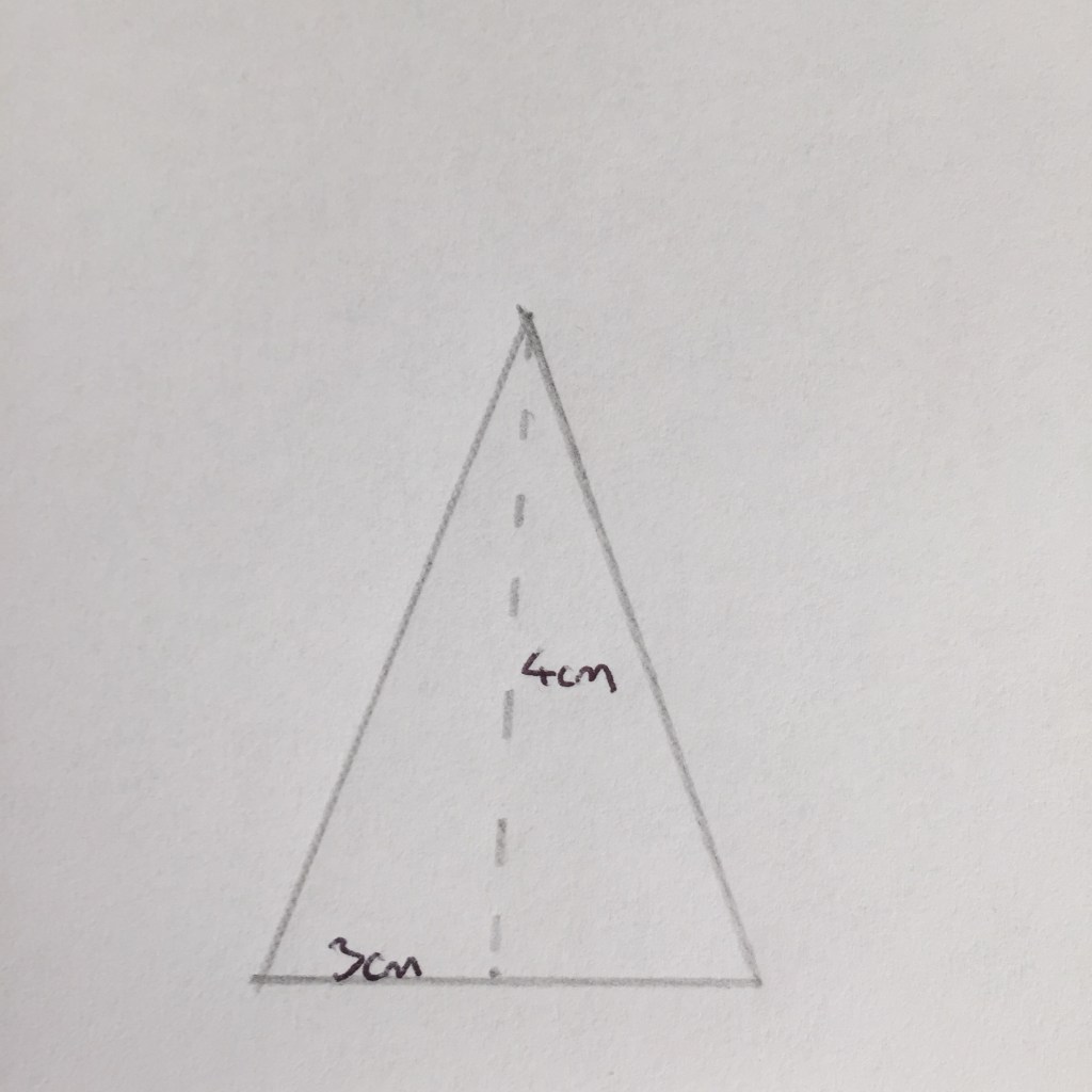 - Draw paper templates of two triangles (one large: 5cm base, 6cm to the top, one small: 3cm base, 4cm to the top) for the prickles and cut out 30 of the large triangles and 18 of the small triangles from the fat quarters, leaving a 0.5cm seam allowance.