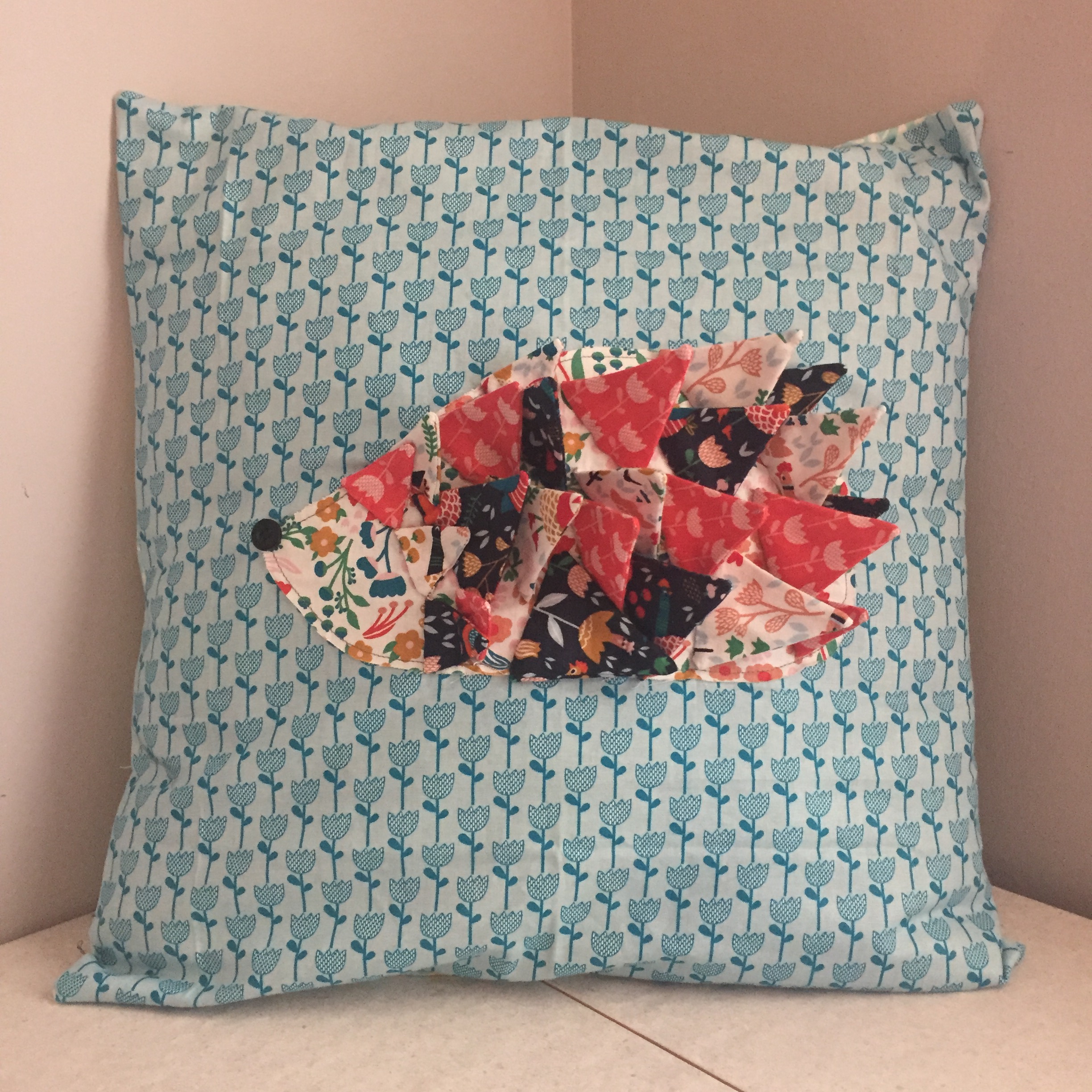 I wanted to make a hedgehog design on a cushion and decided that by using some patchwork triangles I could add some more texture to the cushion, and lots of triangles later and the hedgehog was completed! Think I might make another hedgehog cushion in the shape of a larger hedgehog and patchwork triangles on both sides.