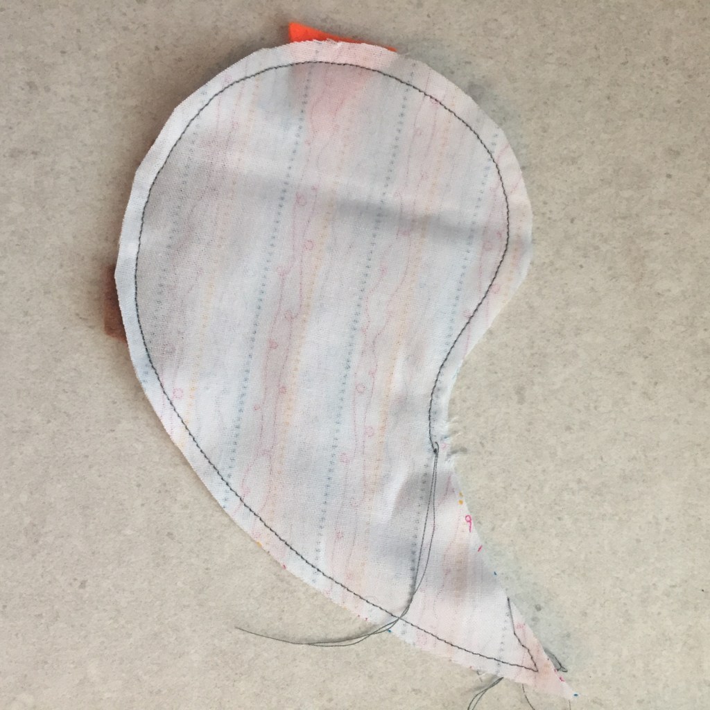- Take the two wing pieces and place right sides together, sew around the edge leaving a 3cm gap for turning. Turn out the right way and slip stitch the gap closed.