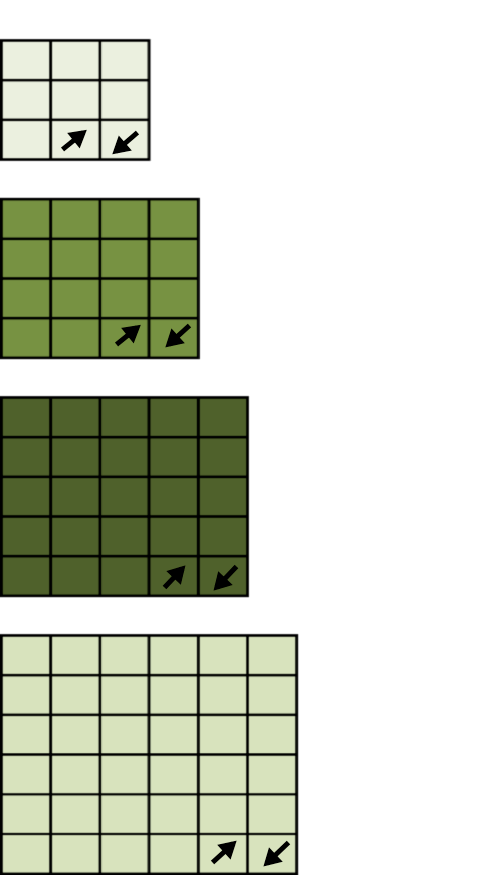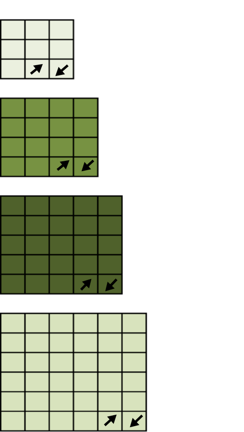 For one tree make one of each the of square sizes below:
