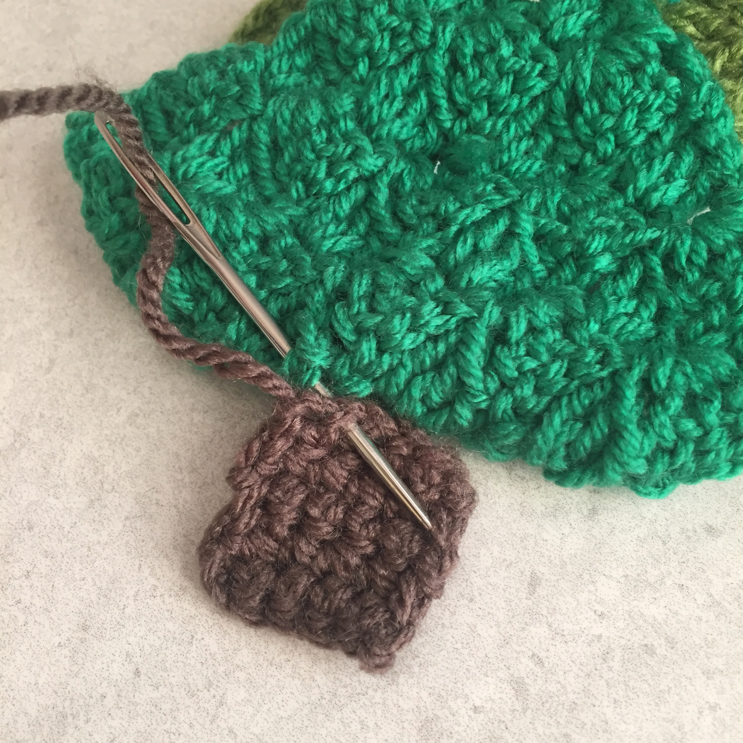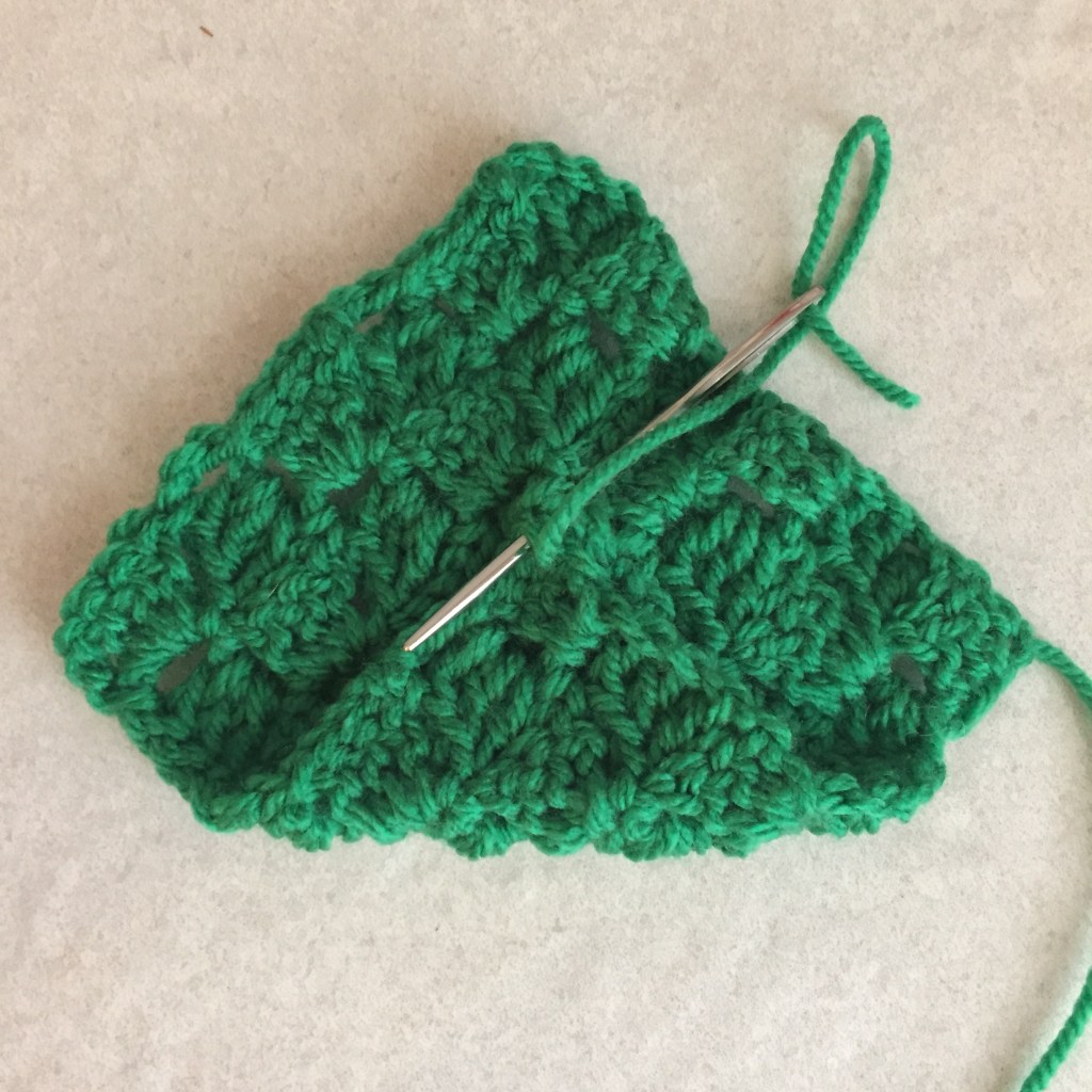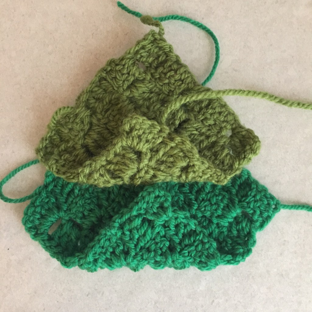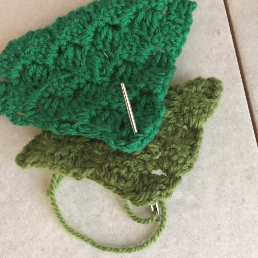 Corner to corner folded crochet square Christmas trees: Trunk