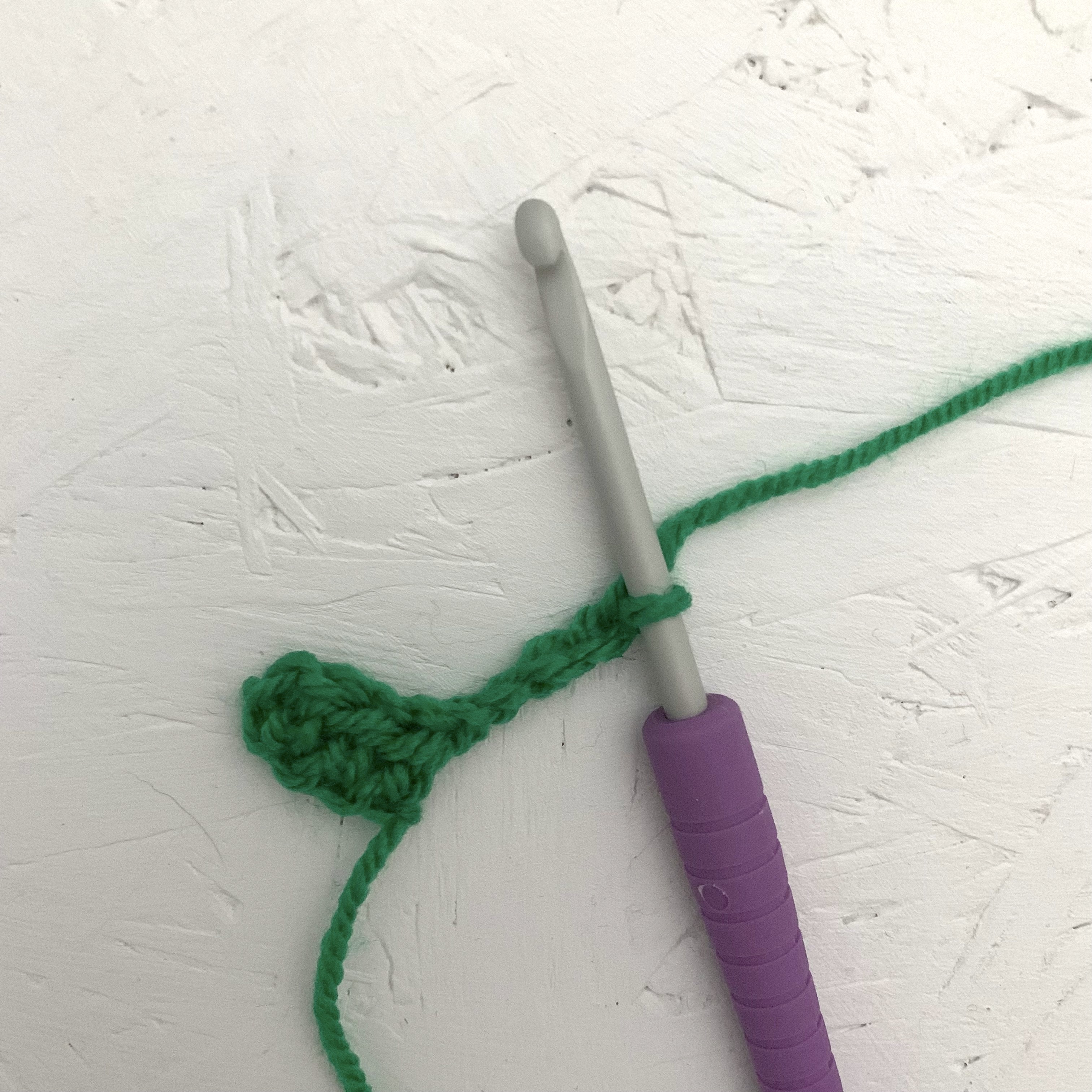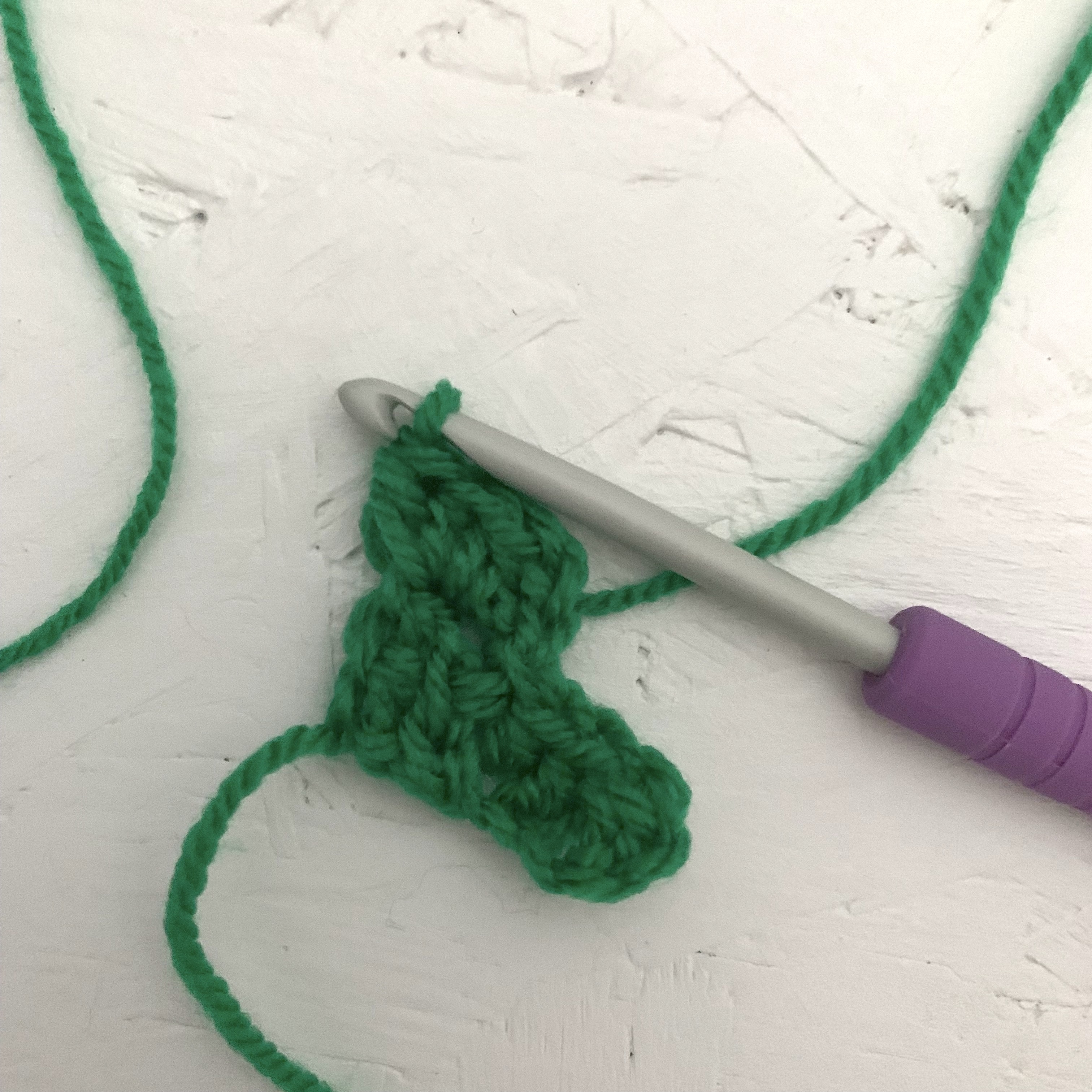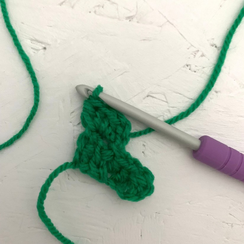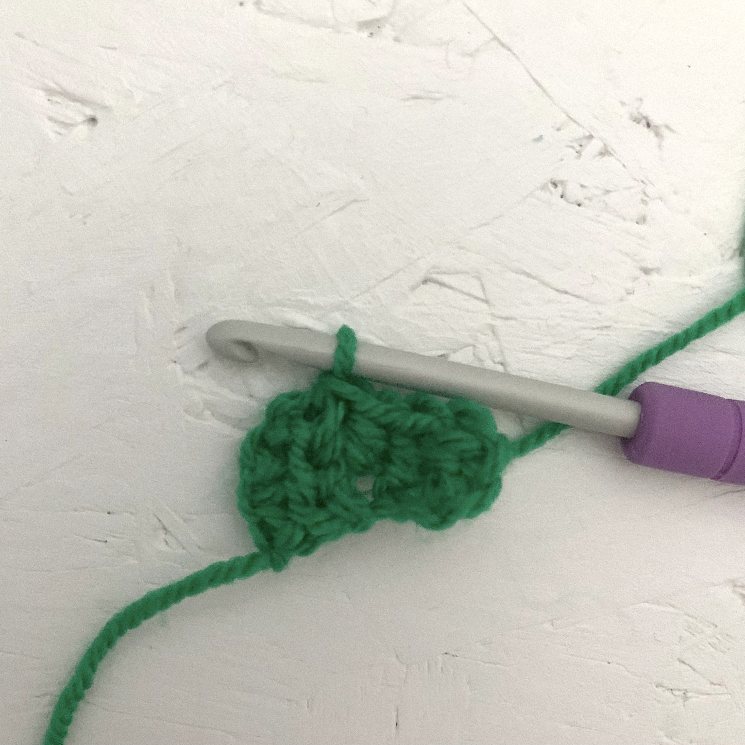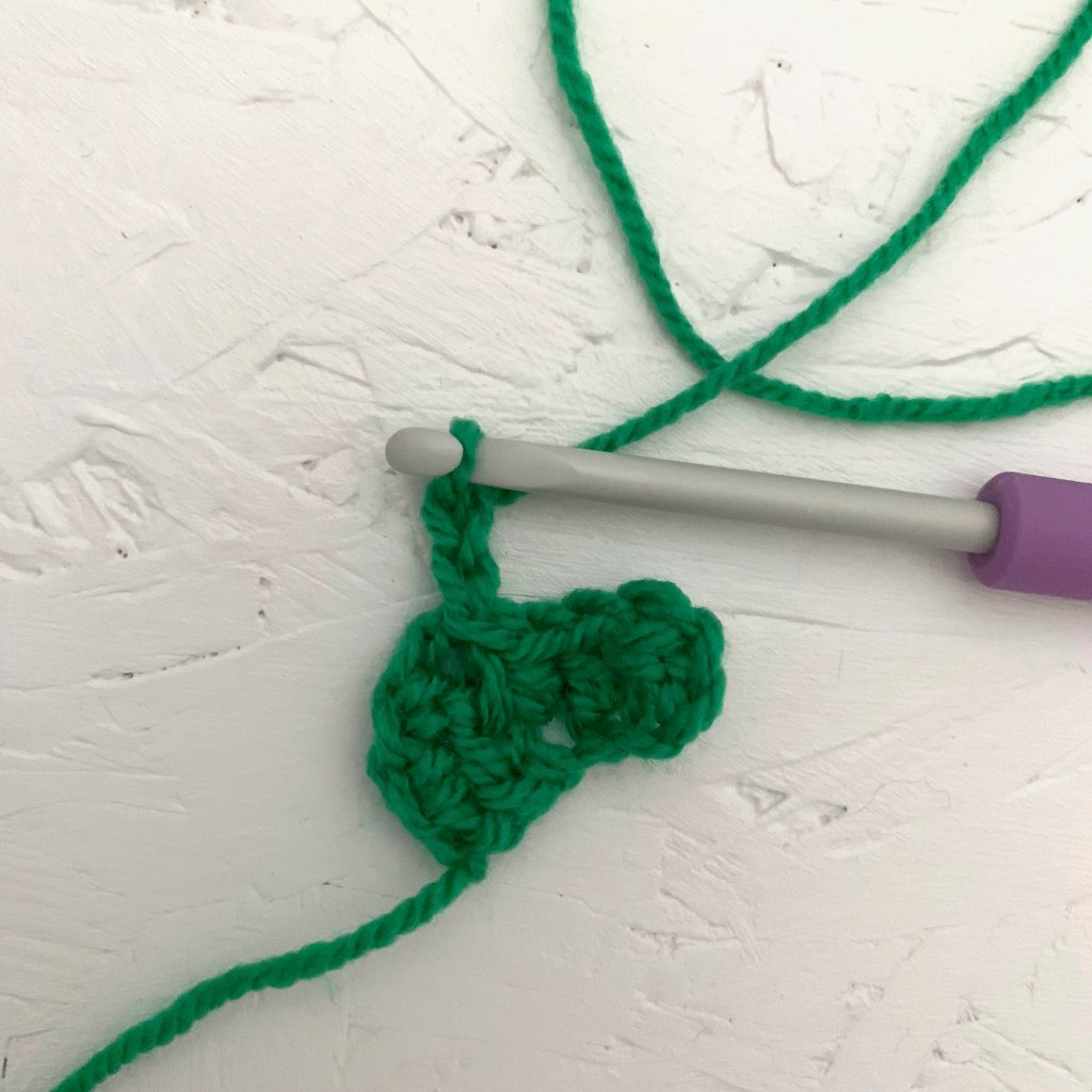 ch5 (picture 1), htr(UK)/hdc(US) into 3rd ch from the hook (picture 2), htr(UK)/hdc(US) into last two ch (picture 3). Turn.