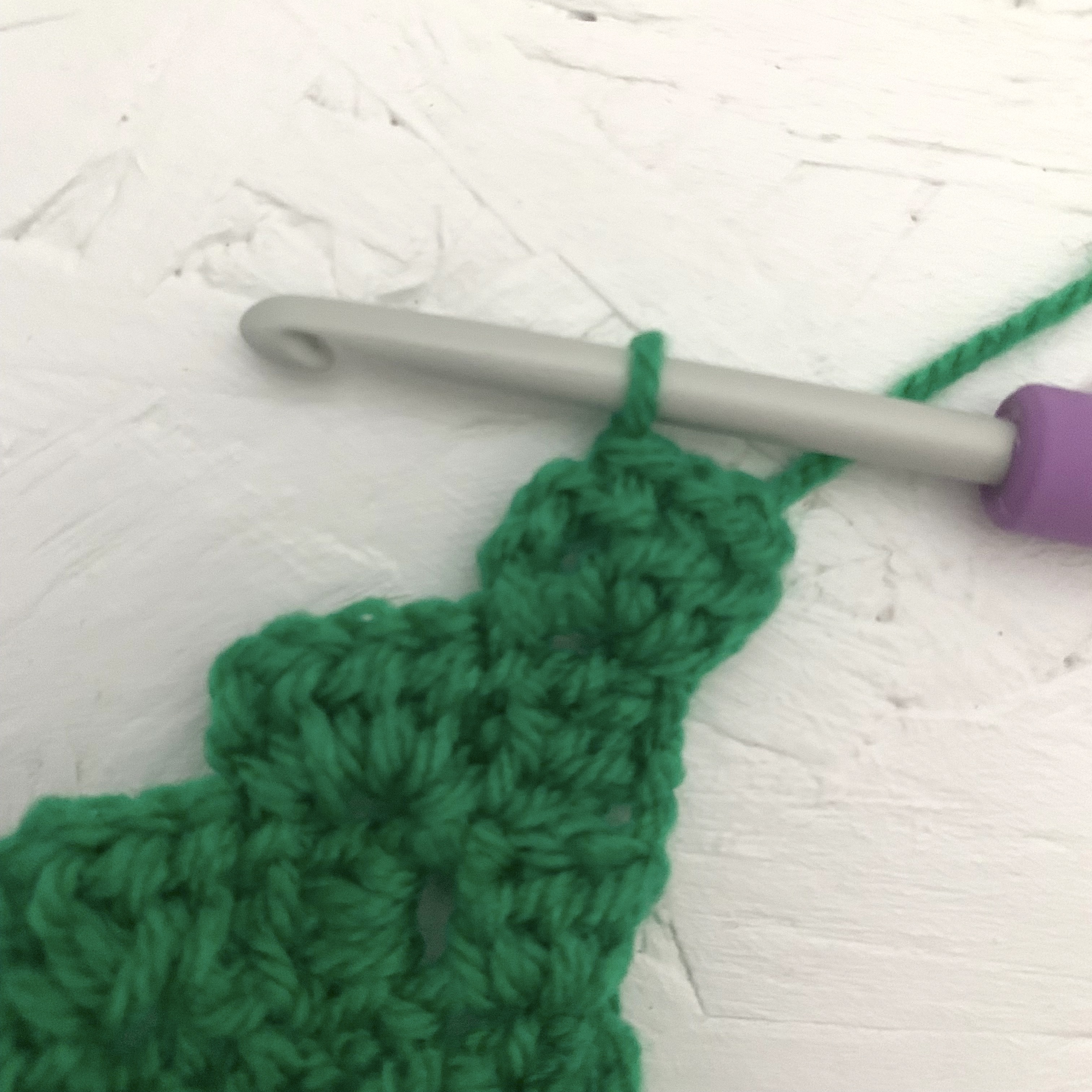 When you have a decrease at the end of a row, do not complete a slip stitch and ch2 htr(UK)/hdc(US) into the last ch gap, instead only complete a slip stitch into the ch gap and turn (picture 1).