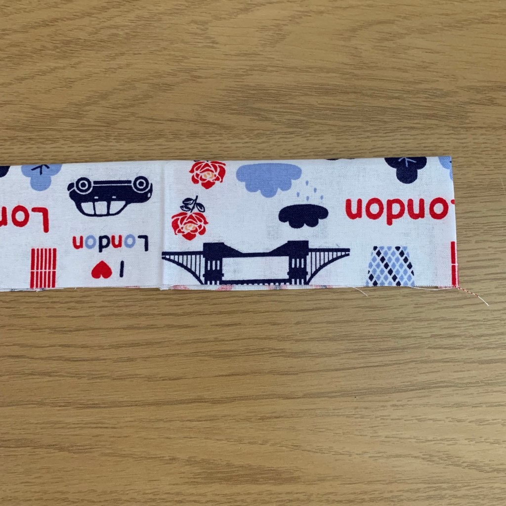 - Take the two top drawstring parts of the bag and fold in the edges by 1cm and then fold in half (wrong sides together) so you have two pieces 26x5cm.