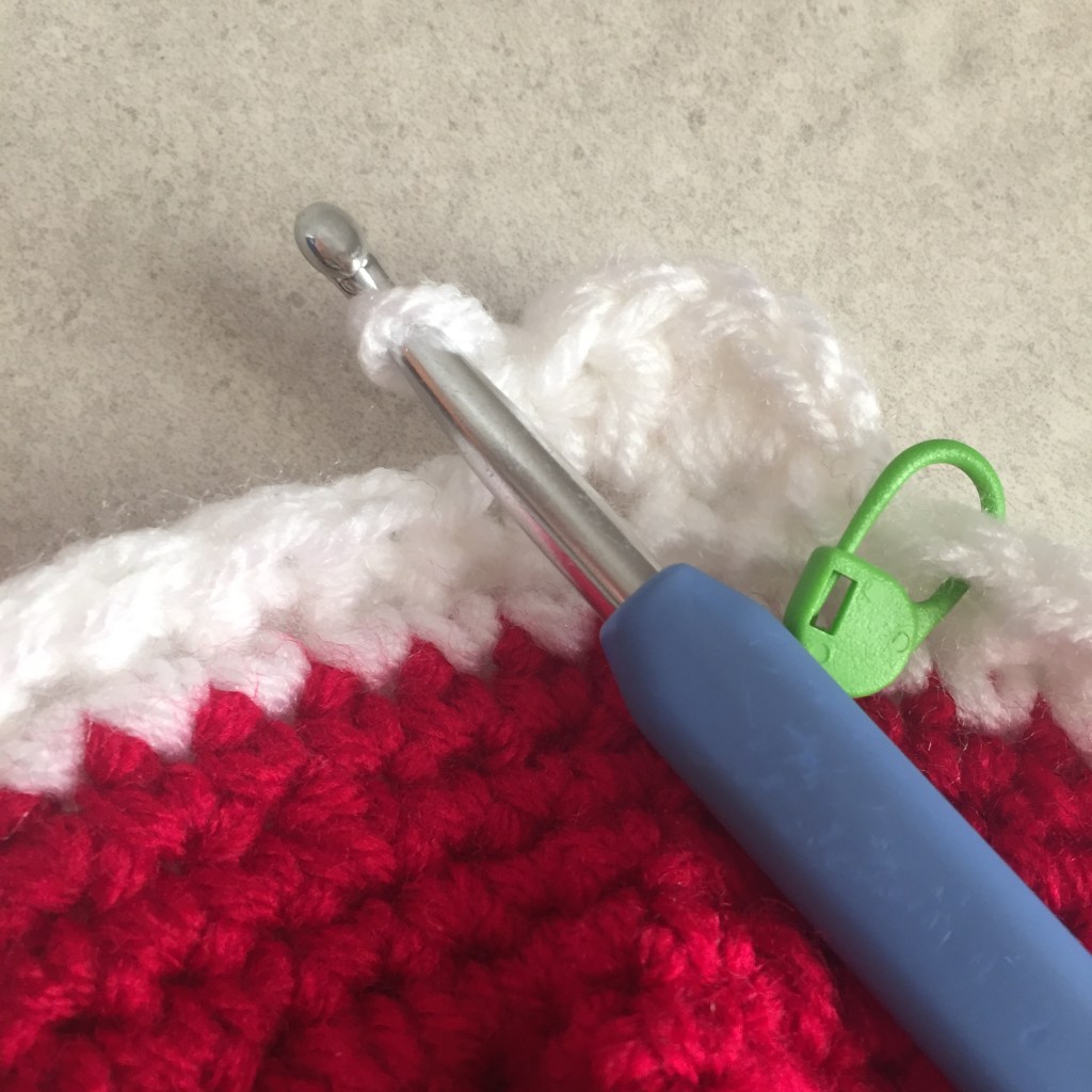 While experimenting with the top ruffle section on my original Santa storage baskets an idea came into mind that I should try doing a bearded version of these baskets. This idea appeared after a particularly disastrous ruffle attempt where I had way to many ruffles within a stitch – some positives do sometimes appear out from a disaster it seems!