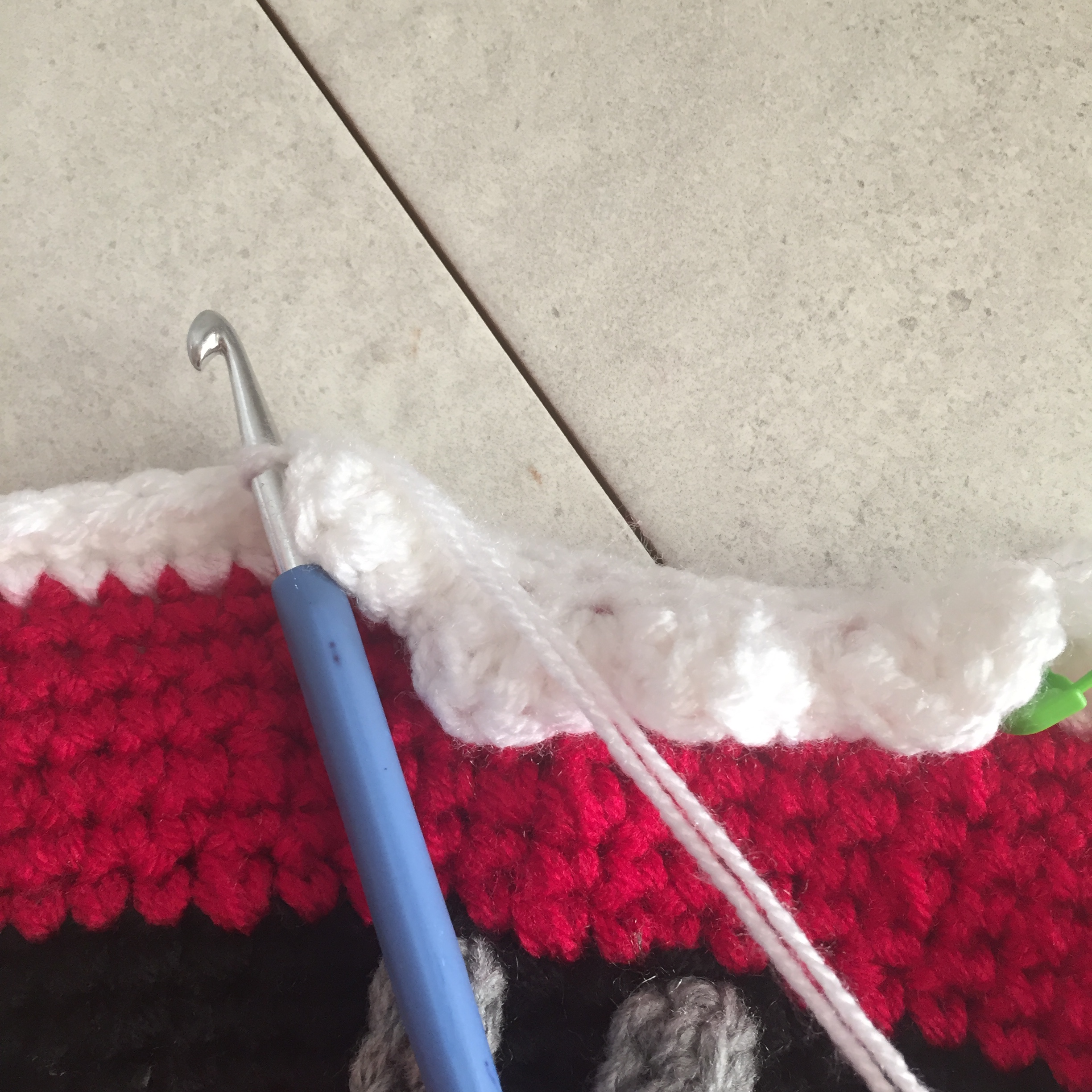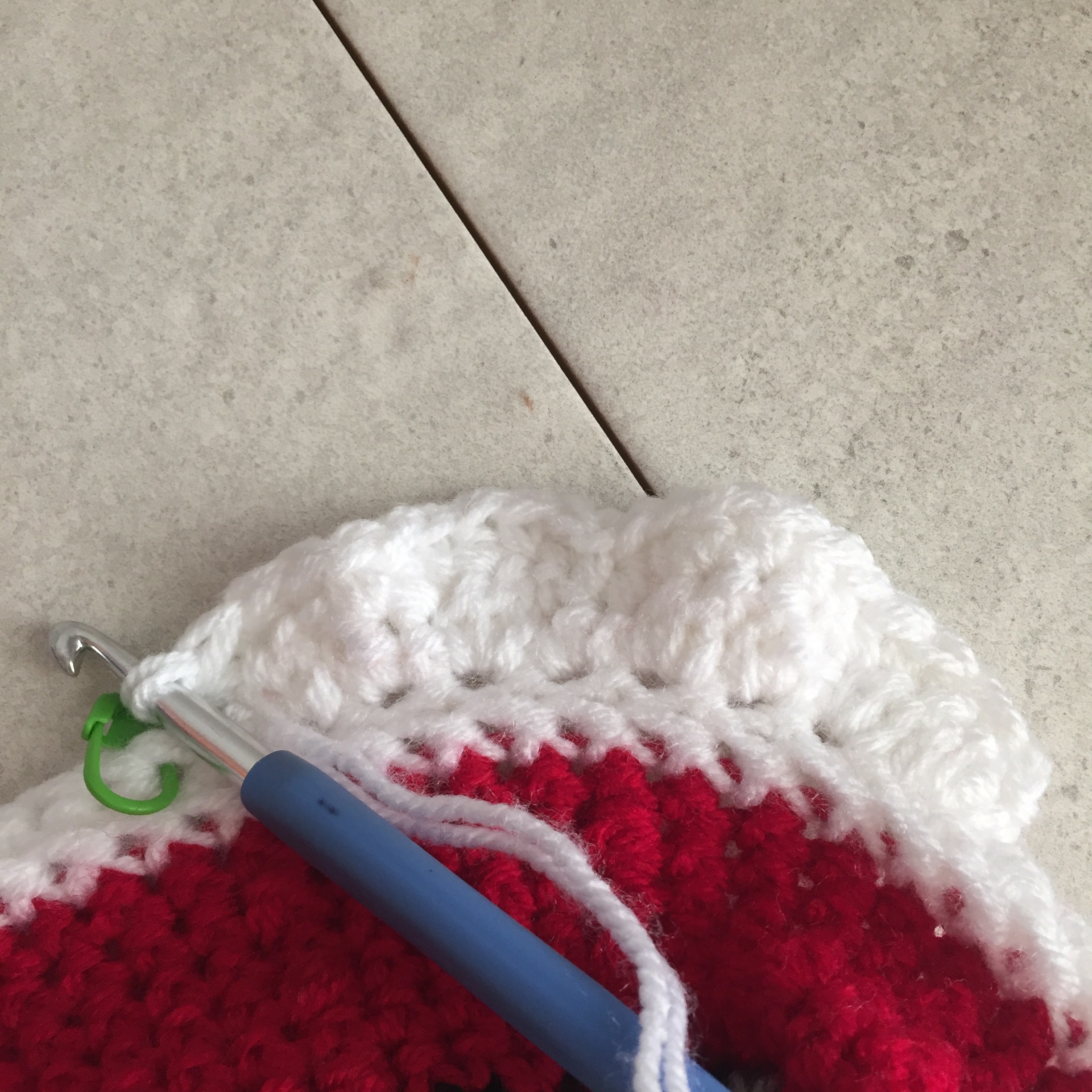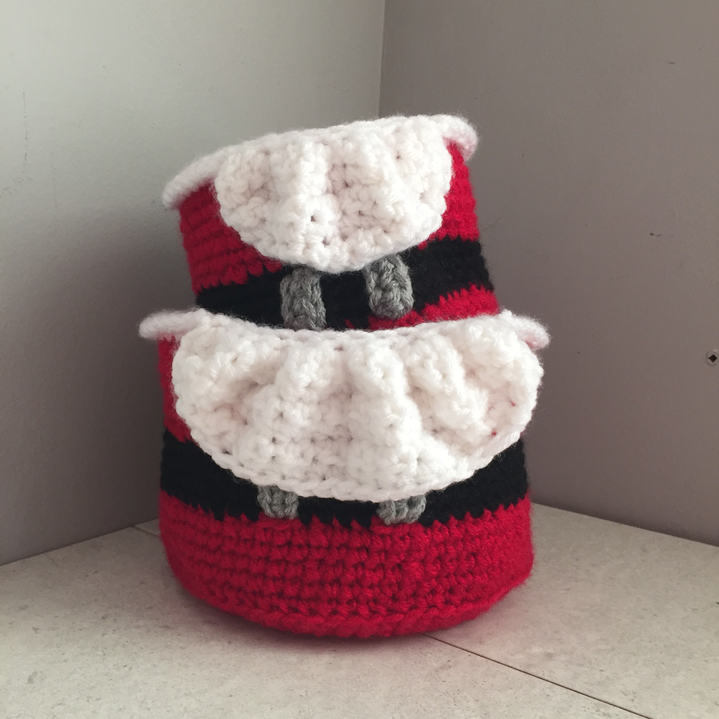 While experimenting with the top ruffle section on my original Santa storage baskets an idea came into mind that I should try doing a bearded version of these baskets. This idea appeared after a particularly disastrous ruffle attempt where I had way to many ruffles within a stitch – some positives do sometimes appear out from a disaster it seems!