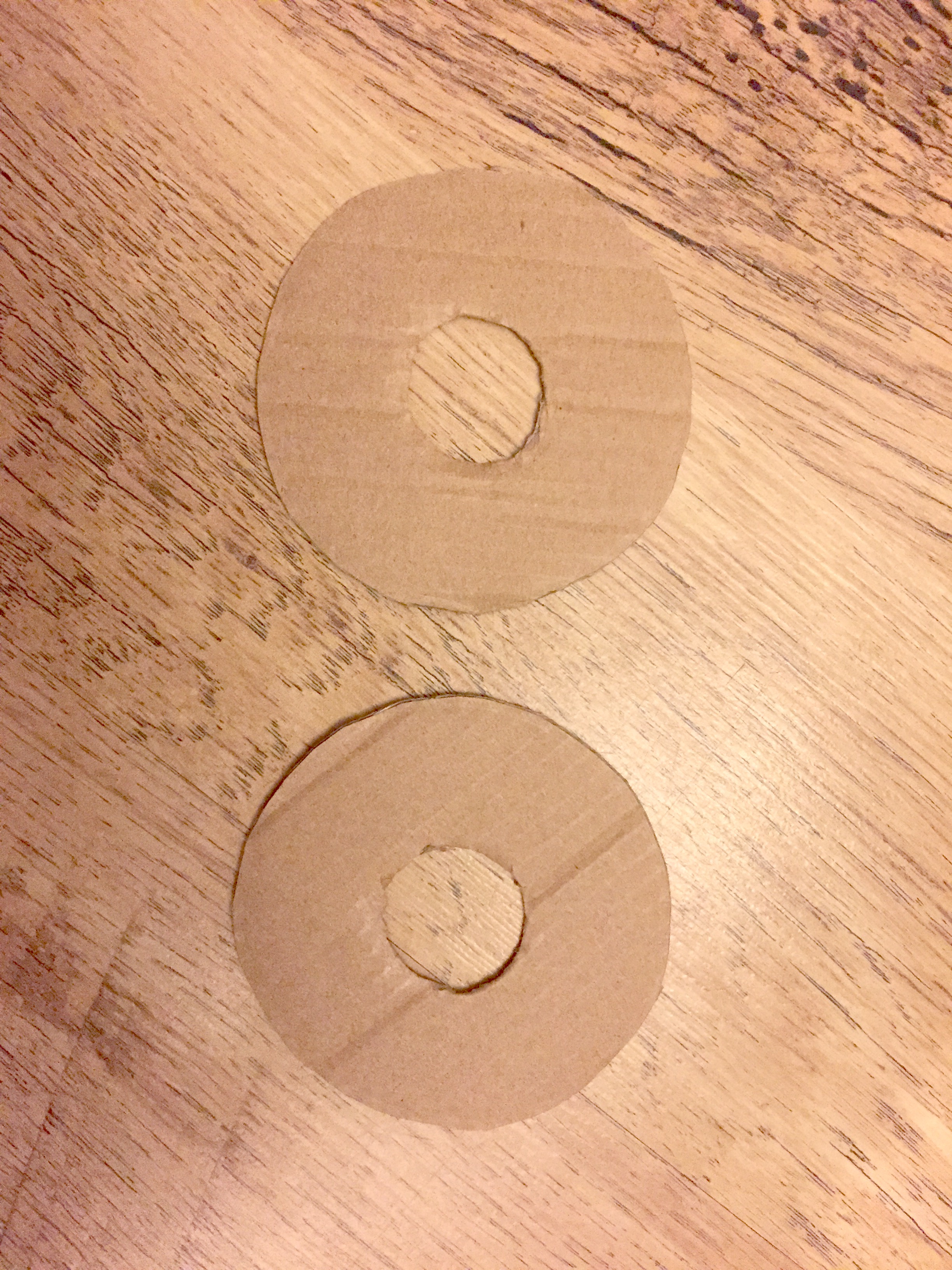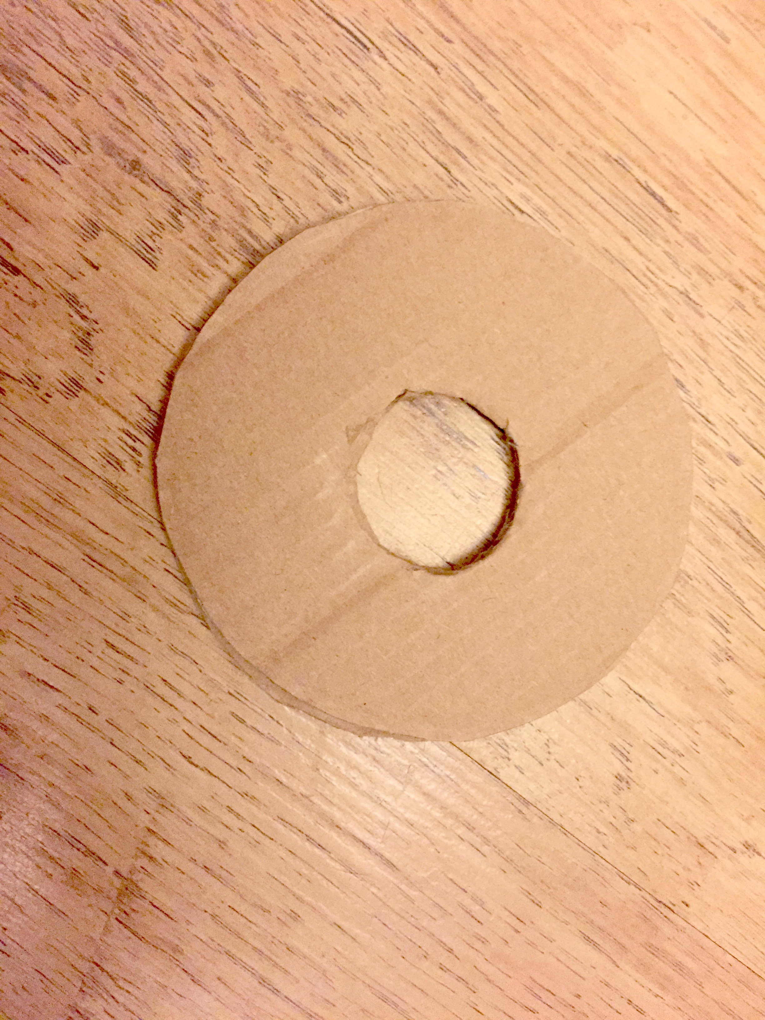 - Cut around the edge of the circle, lining the scissors up in the gap between the two pieces of cardboard.