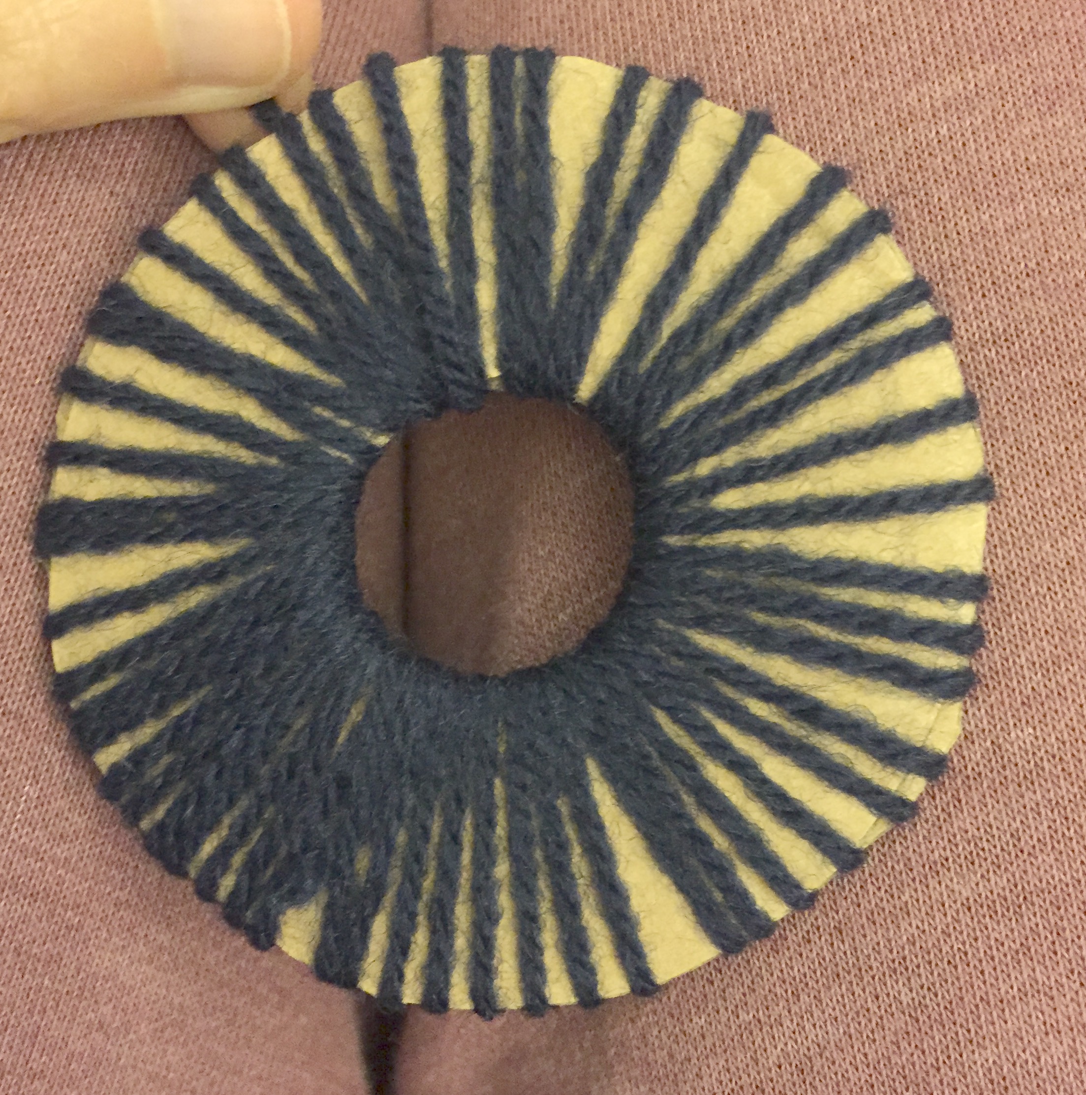 - Keep wrapping the wool around until the circle is completely covered and the middle smaller circle is full of wool.