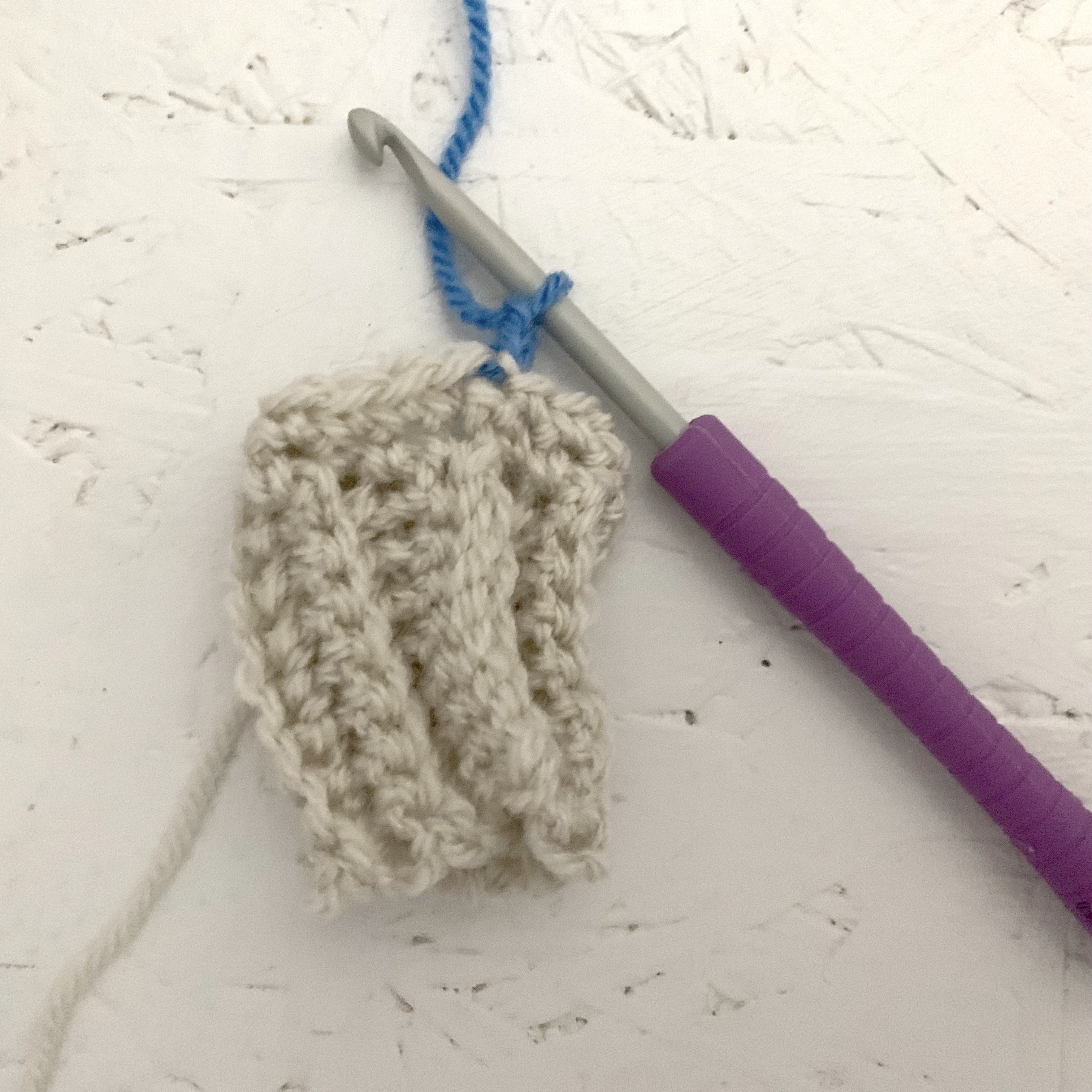 Rows 2-38: ch1 (doesn’t count as a stitch) in back loops only; sc along row (ribbed stitch how to can be found here).