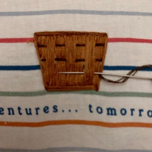 - Using the darker thread, weave in and out of the long stitches to create the basket effect.