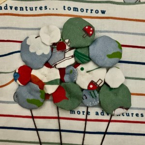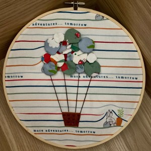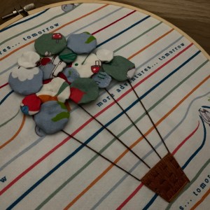 This would also make a great cushion, or wall hanging if you don’t want to use an embroidery hoop. You could always use buttons for the balloon top instead of yo yos, or do a mix of both.