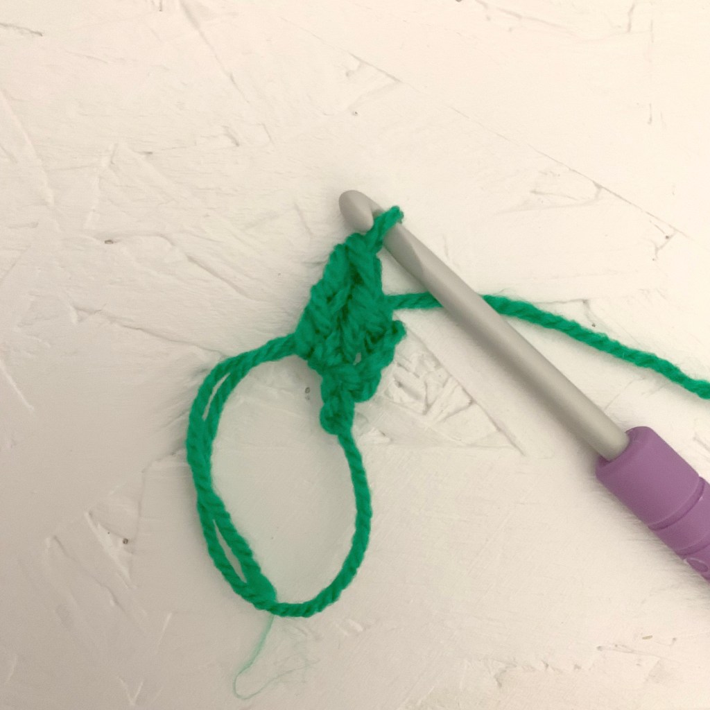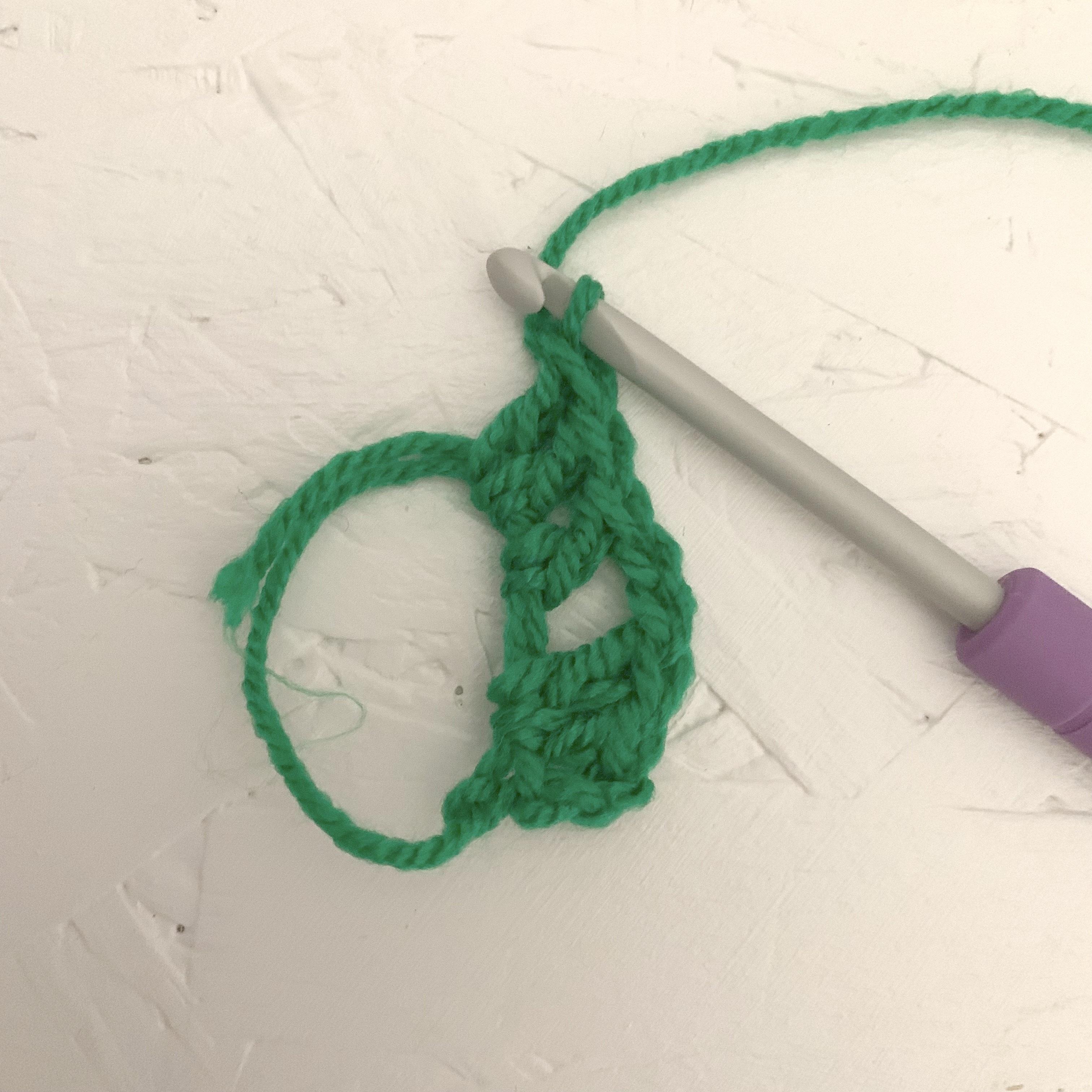 Round 1: ss into next 2 stitches, 2sc into next two stitches, ss into next two stitches (8).