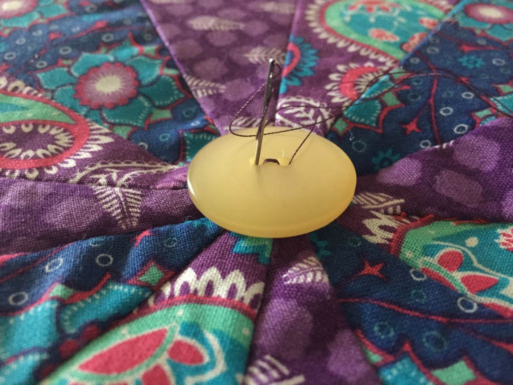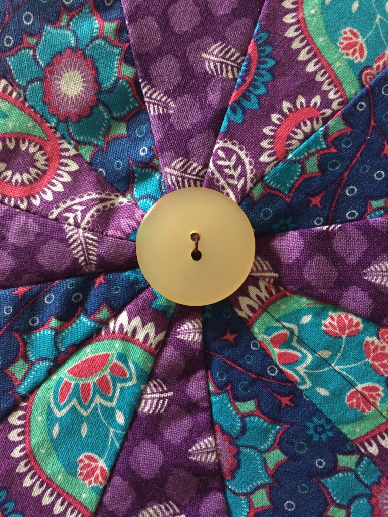 These sprocket cushions have a button centre. I have also made some other patchwork sprocket cushions with a fabric yo yo centre.