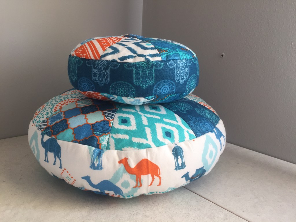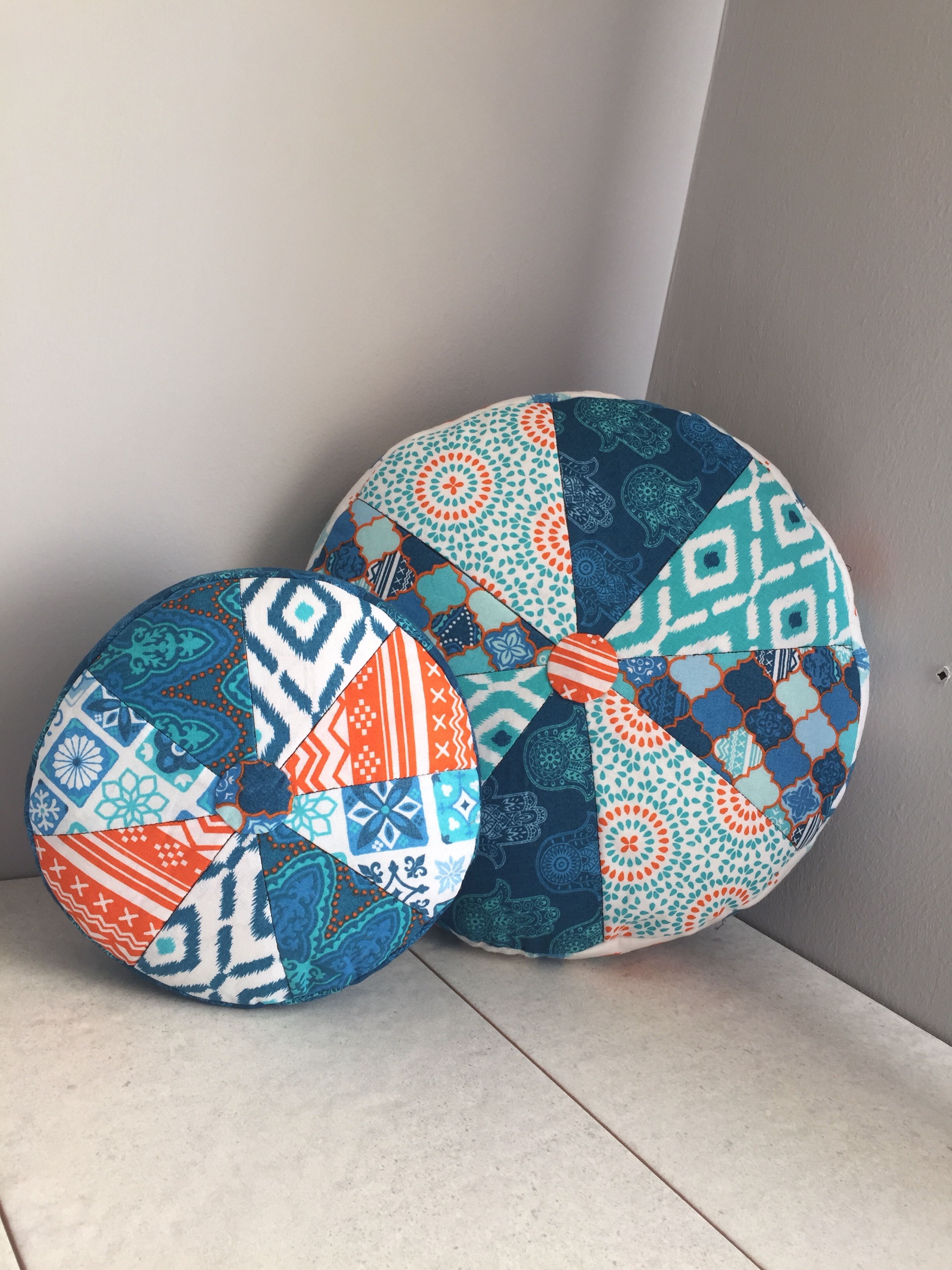 Perfect for USing Outside This summer – Some bright Moroccan Themed Fabric sprocket pillows