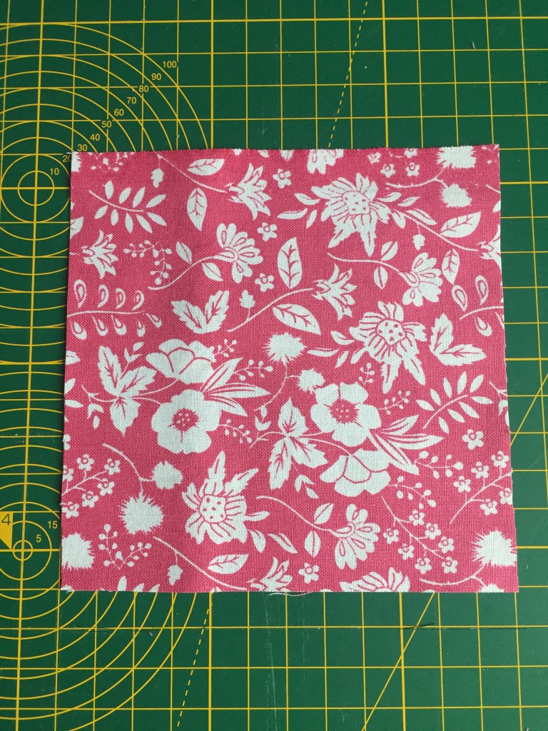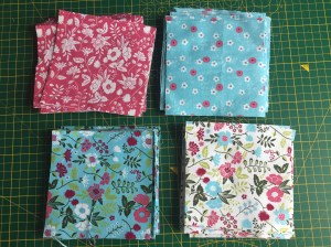 - To make the squares you will need to cut 12×1 cm squares out of 4 of the different fabric patterns: