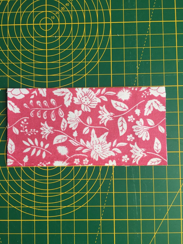 - Open the fabric band right side out, press flat and sew a line around 1cm from the edge of the front piece.