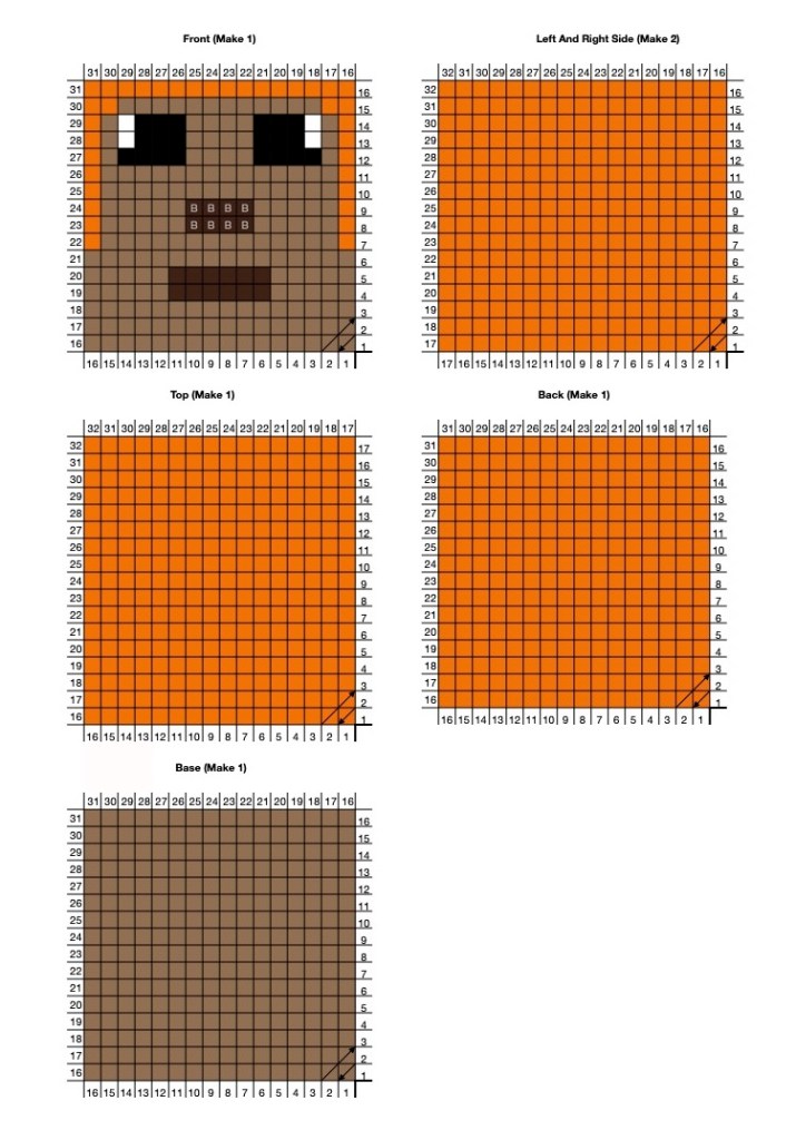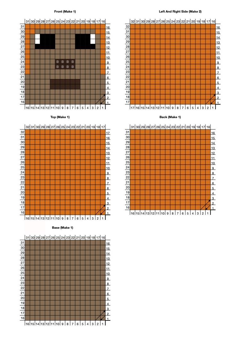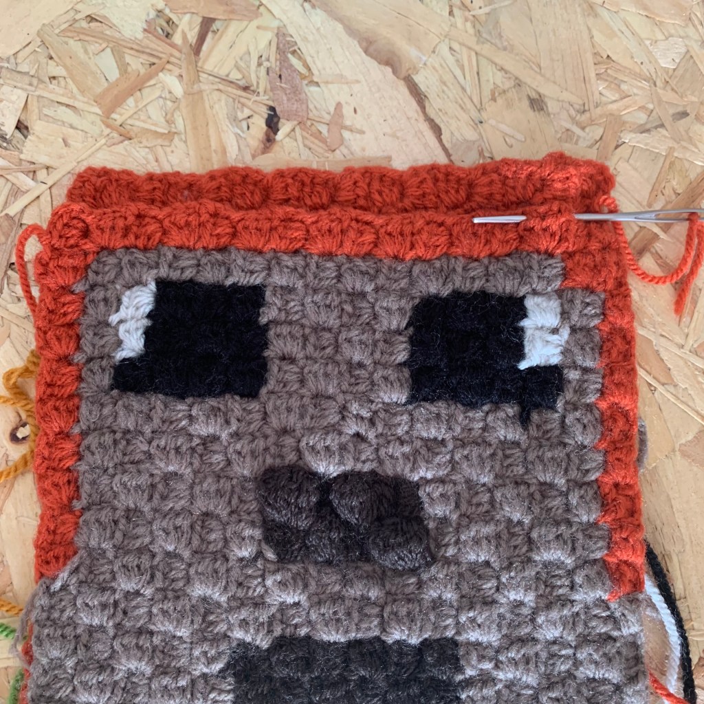 - Joining to the top piece: make sure the bottom edge of the top piece over laps the front by 1 block.