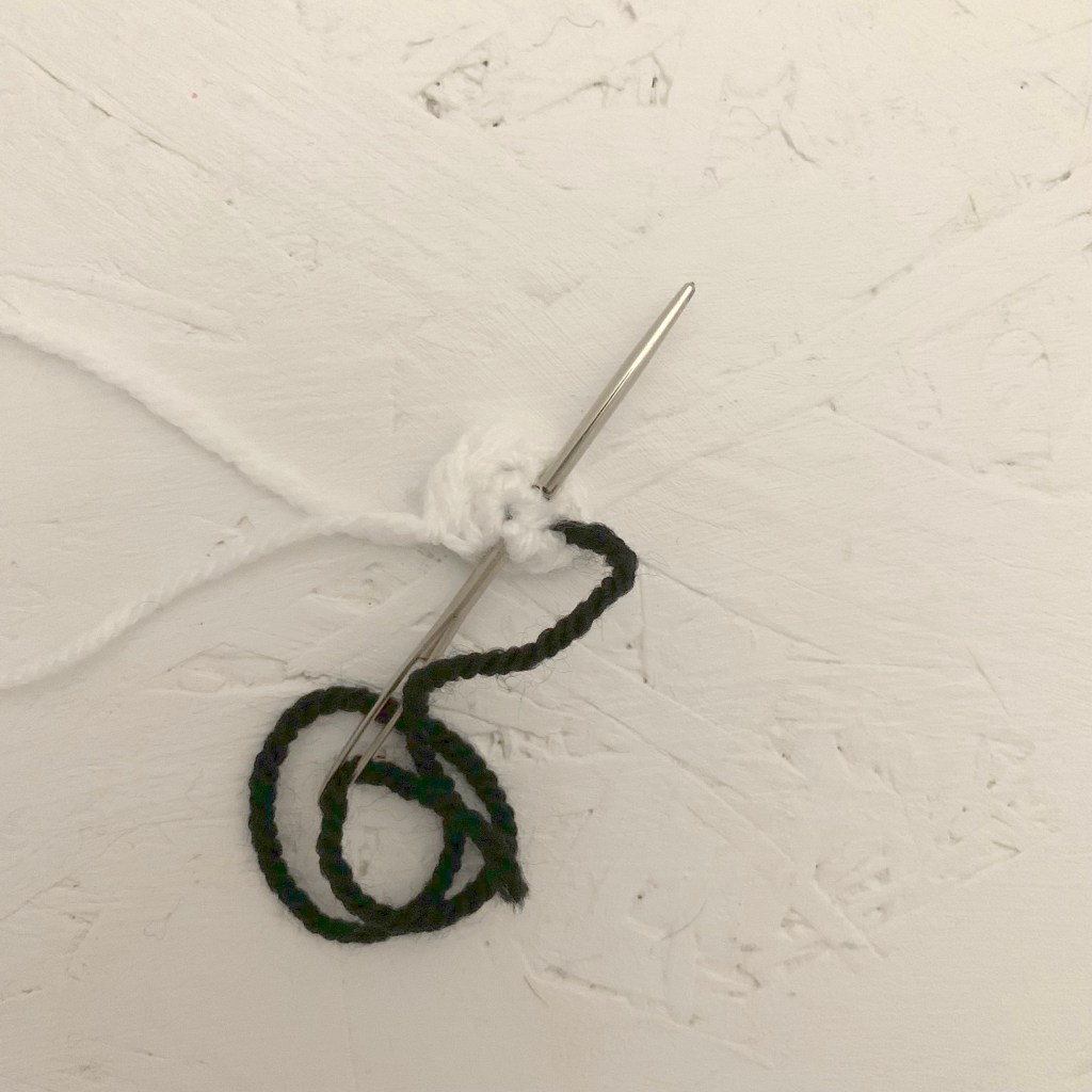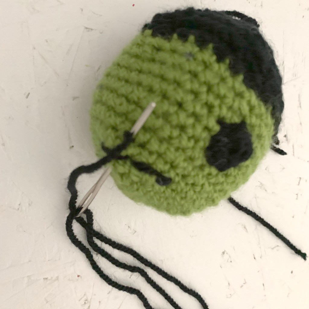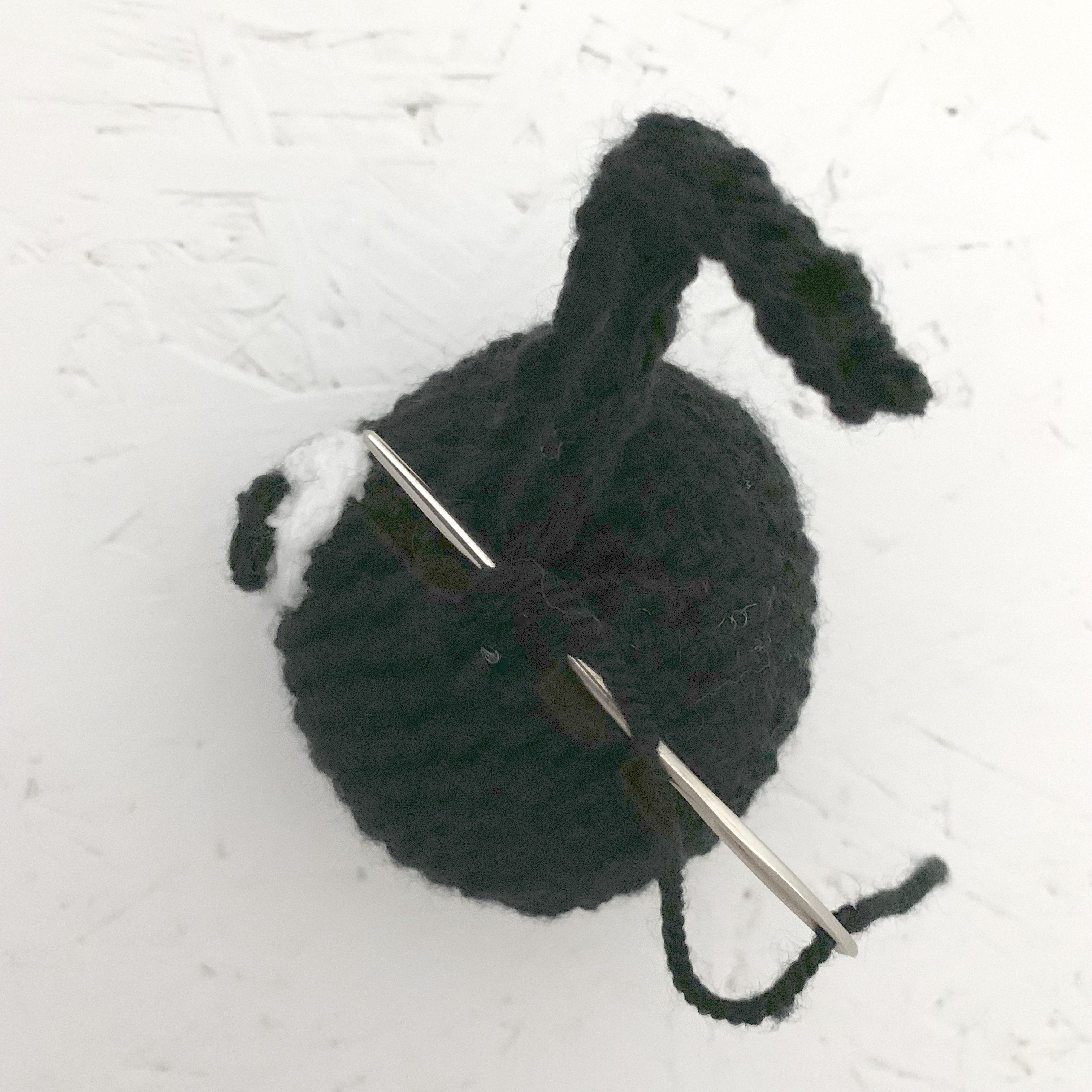 Round 12: *sc2tog, sc into next five stitches. Repeat from * around. Change to black wool and a 5mm hook on the final yo of the last sc (30sc).