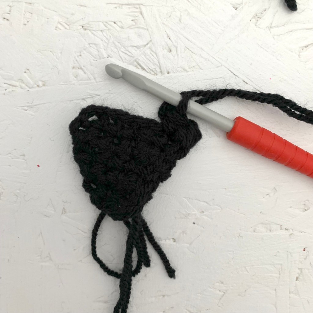 Row 2: ch1 (doesn’t count as a stitch) sc2tog, 2sc, sc2tog (4sc.)