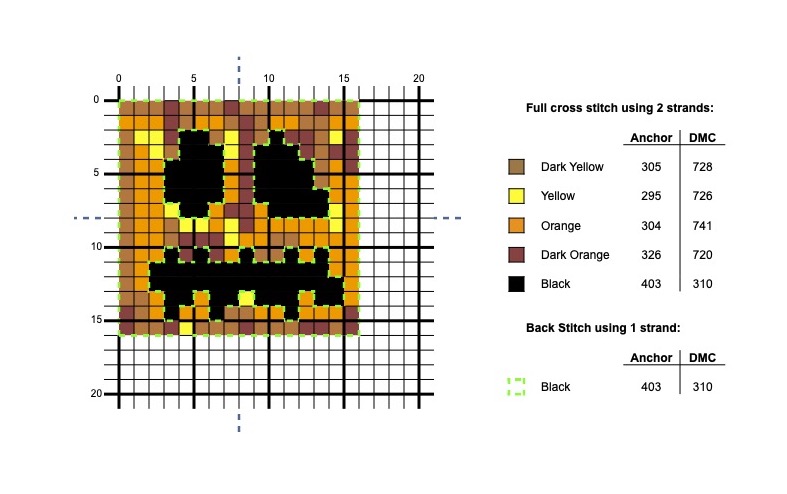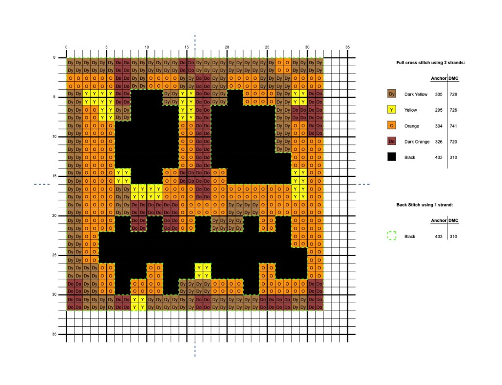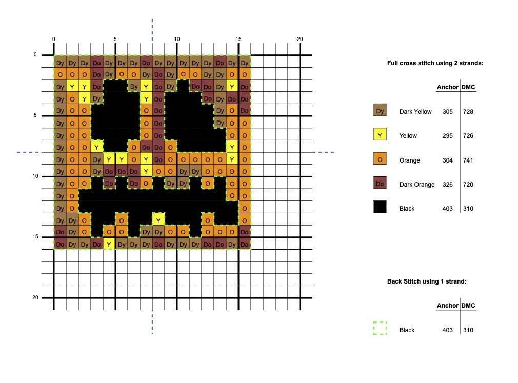 Minecraft Block Cross Stitch Pattern: Pumpkin/Jack-O-Lantern – Large Size with Symbols