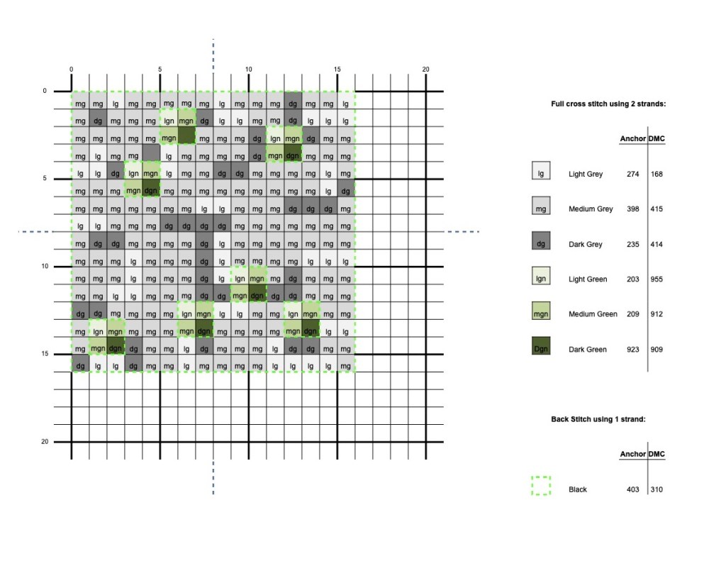 Minecraft Block Cross Stitch Pattern: Emerald Ore Block, Large Size With Symbols