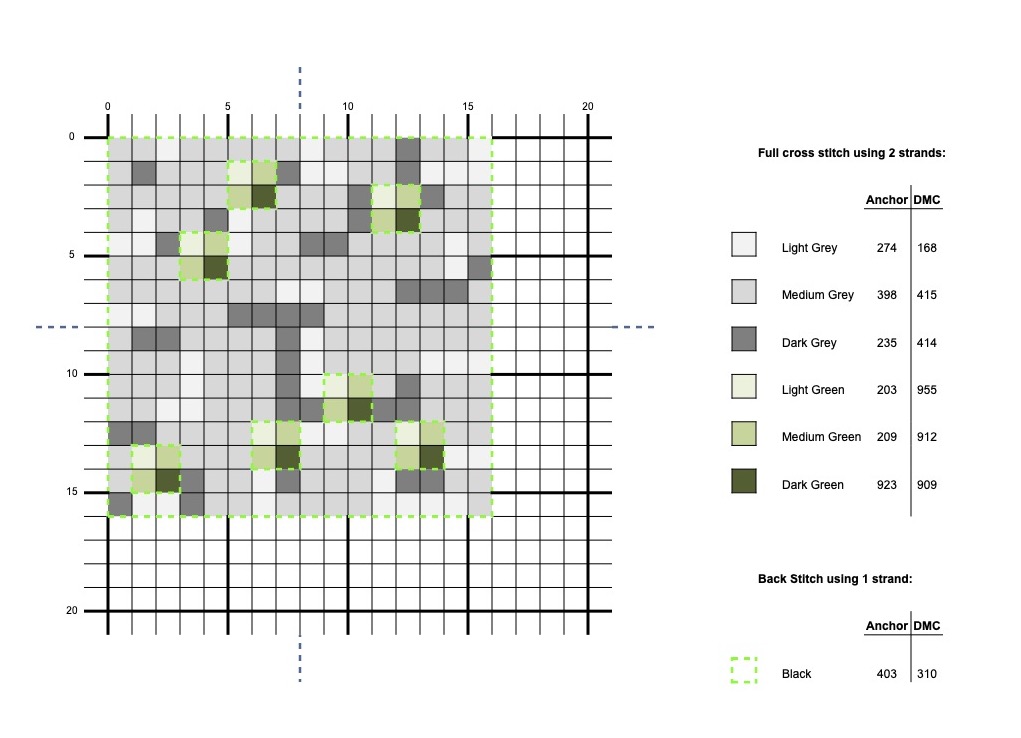 Minecraft Block Cross Stitch Pattern: Emerald Ore Block, Small Size