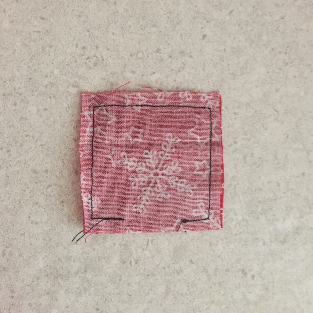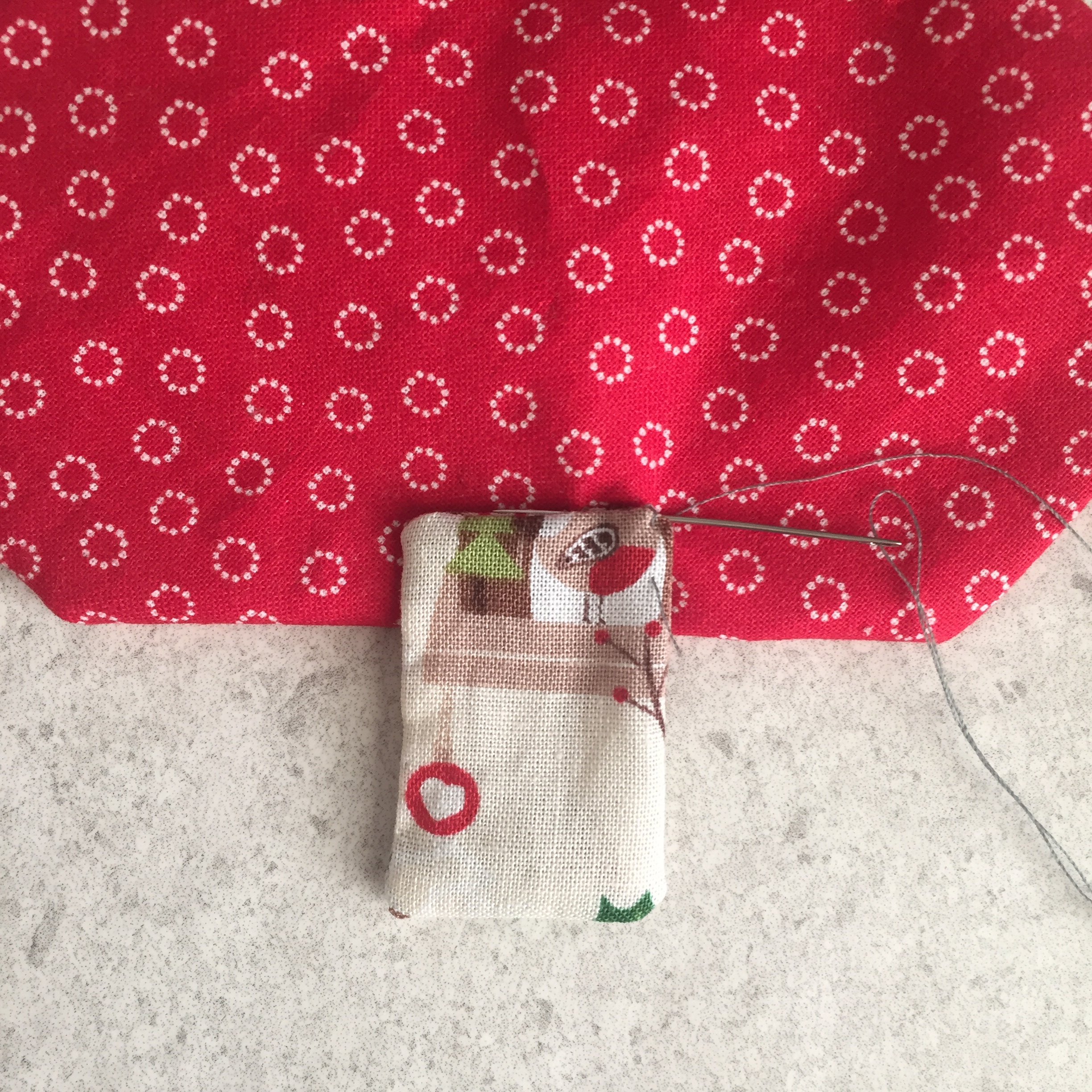 - Sew the trunk onto the back of the largest square 1cm up from the bottom edge.