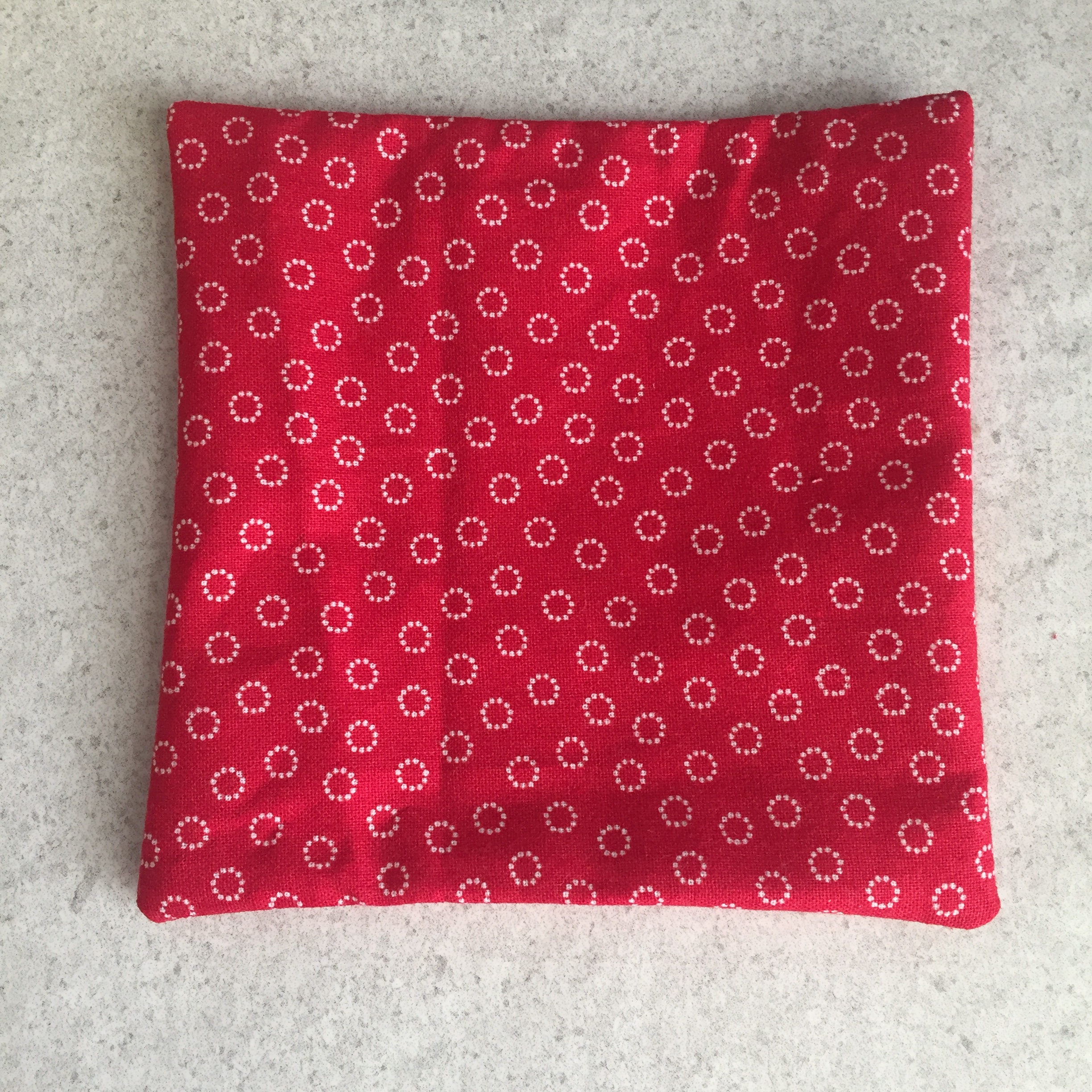 - Take two pieces of the same size and placing right sides together sew around leaving a gap for turning. Turn out the right way, press and slip stitch the gap closed. Repeat with the remaining pieces, ending up with 5 squares.