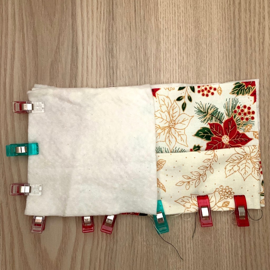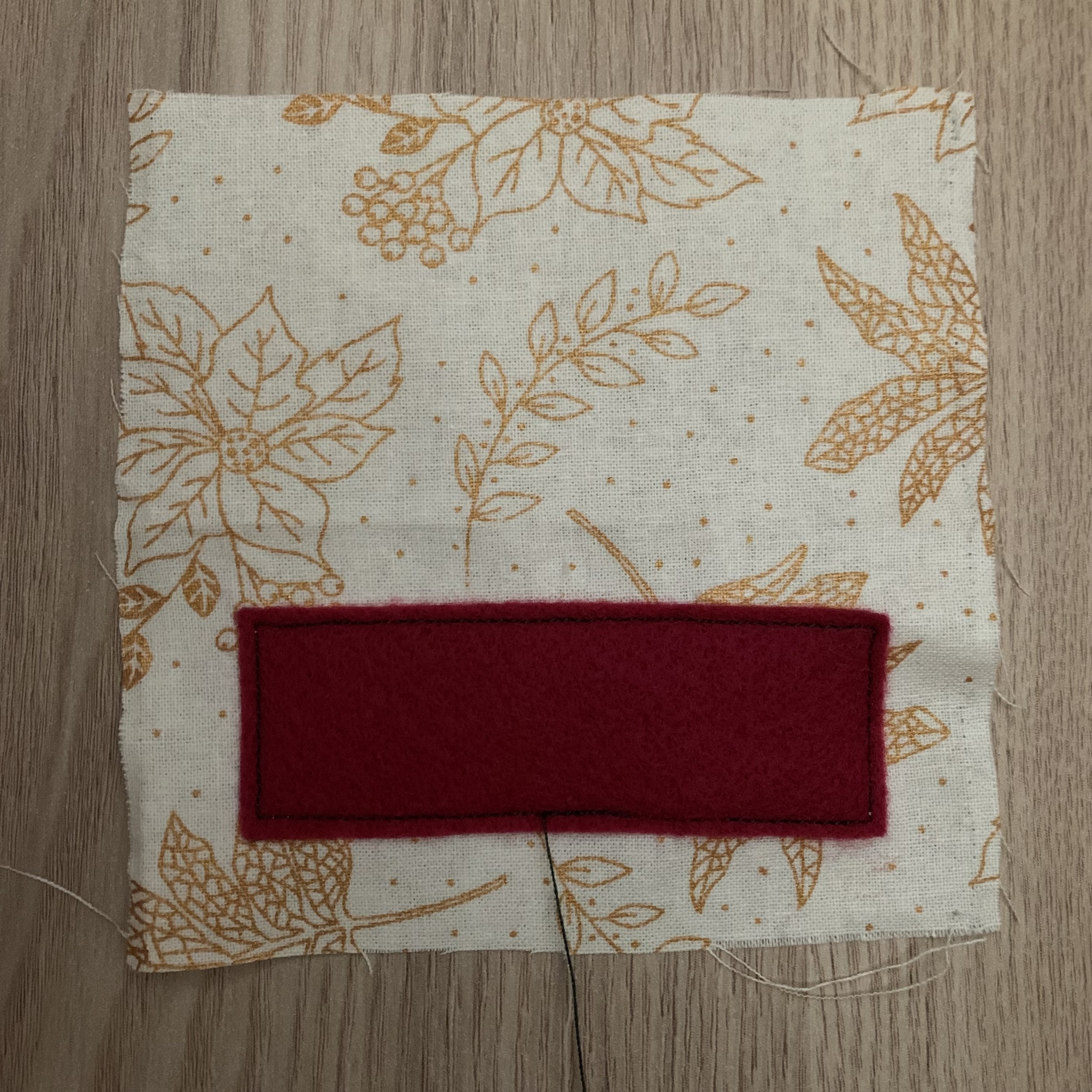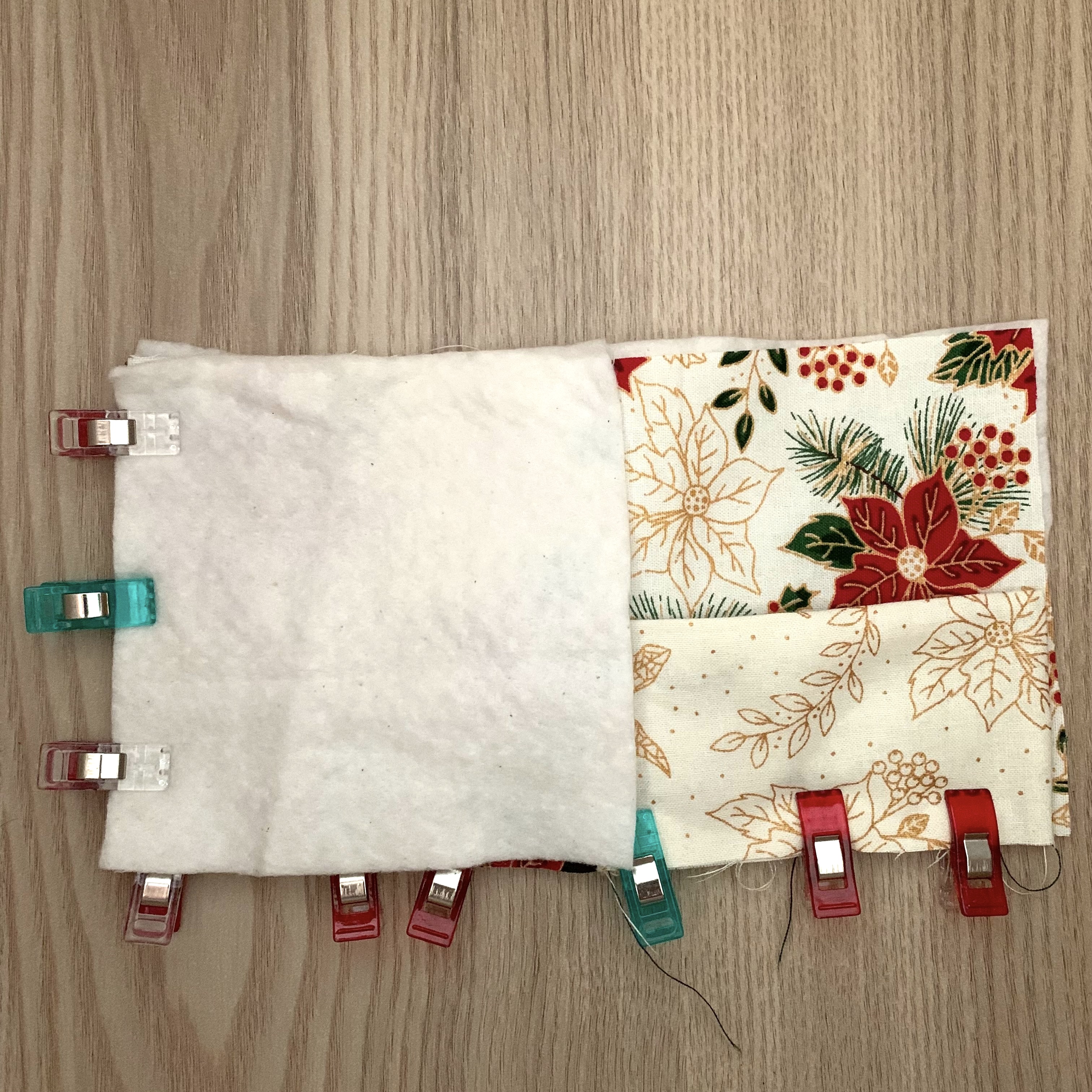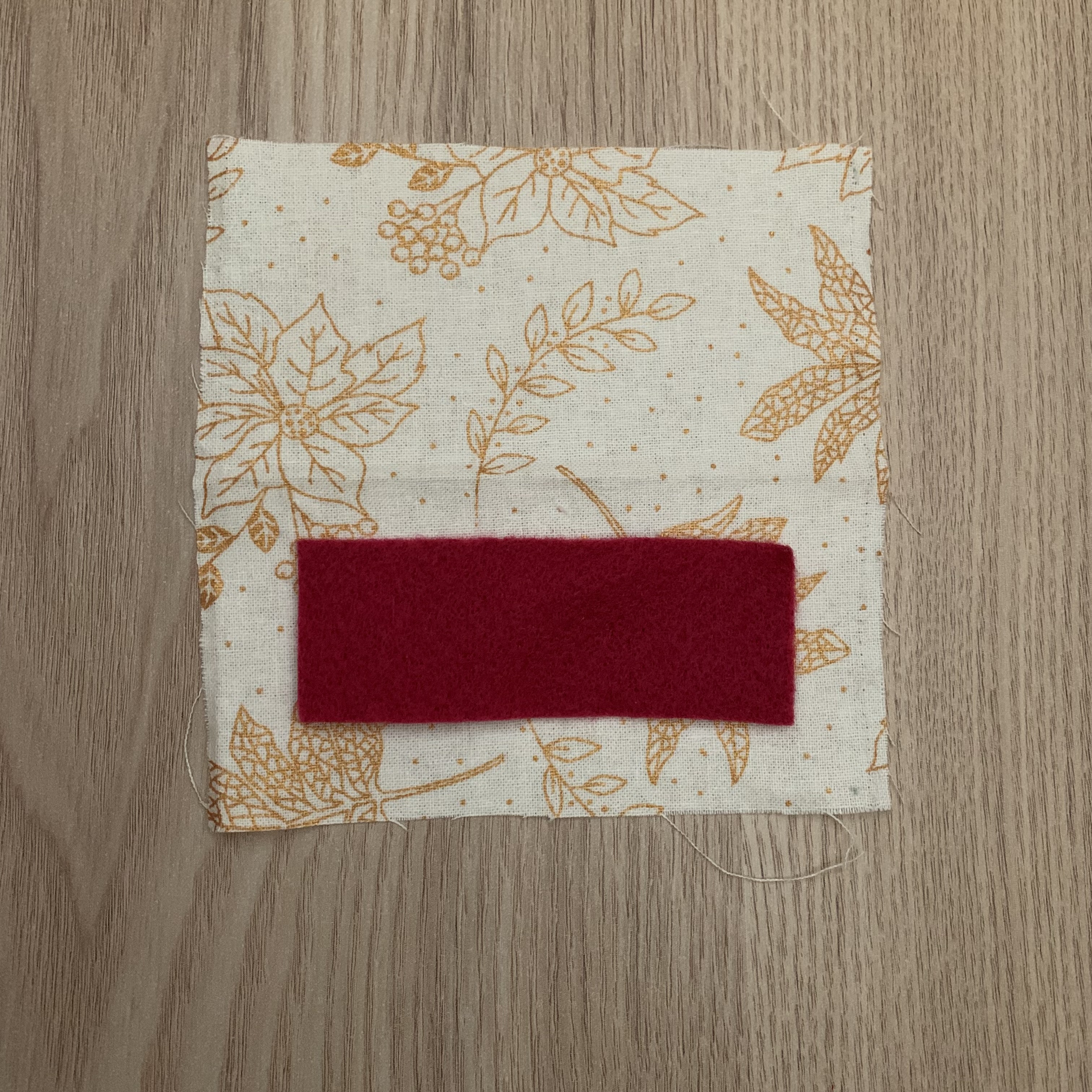 - Using a second fat quarter for the pocket and cut out 1 square.
