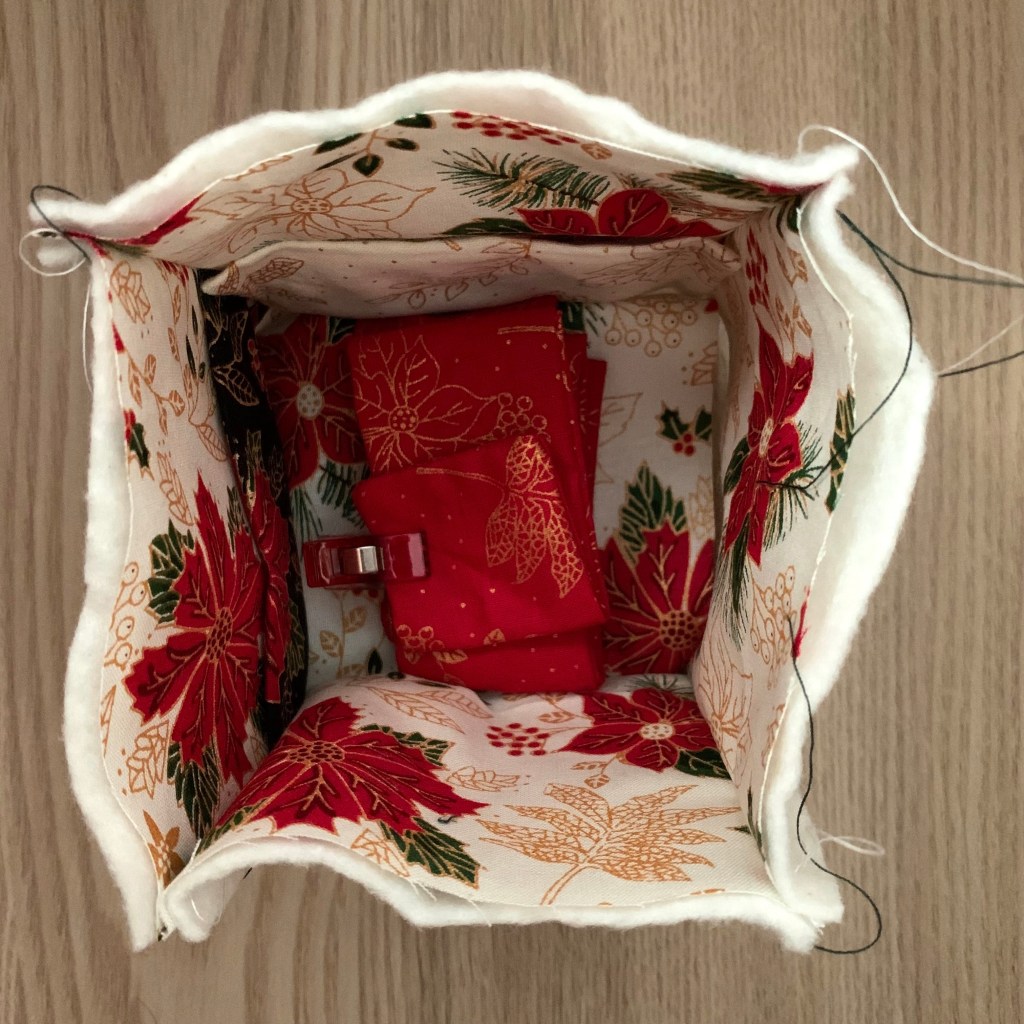 Perfect for keeping your pins, scissors and thread organised this sewing cube also has a little Christmas twist with a present theme.