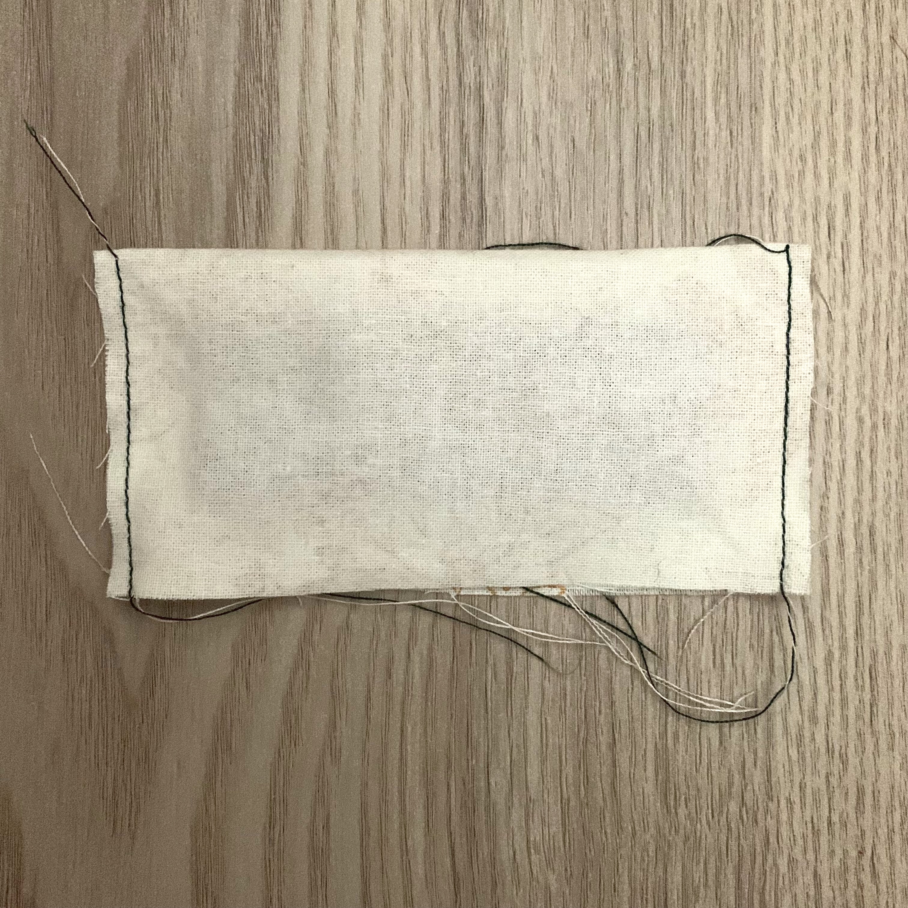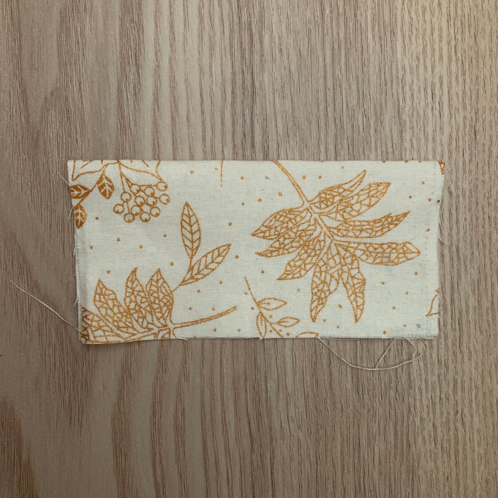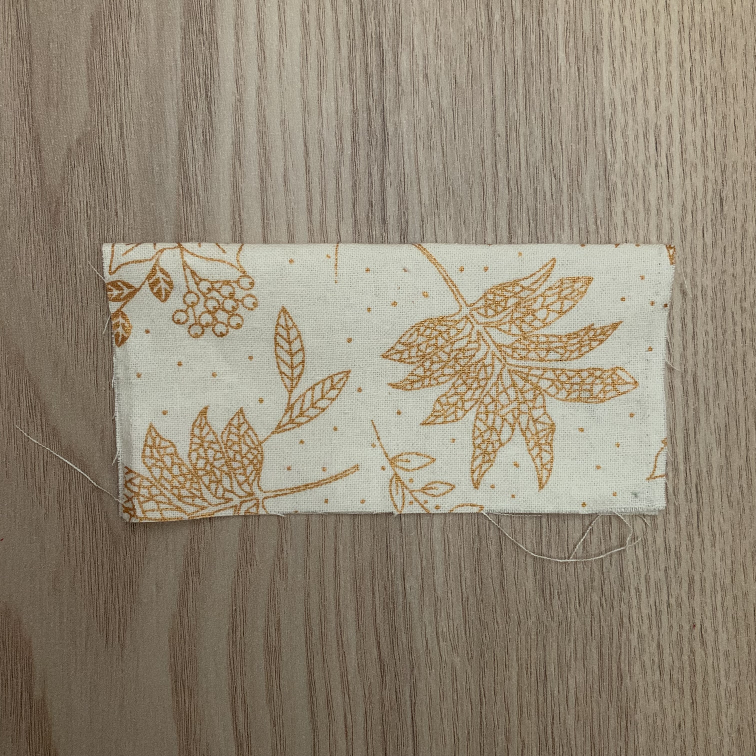 - Take the side flap piece and fold in half (placing wrong sides together), press, unfold and put the felt piece in the middle of the bottom half of the side flap and sew around 0.5cm from the edge to secure. Fold the side flap in half (placing right sides together). Sew down each side to secure. Fold out the right way.