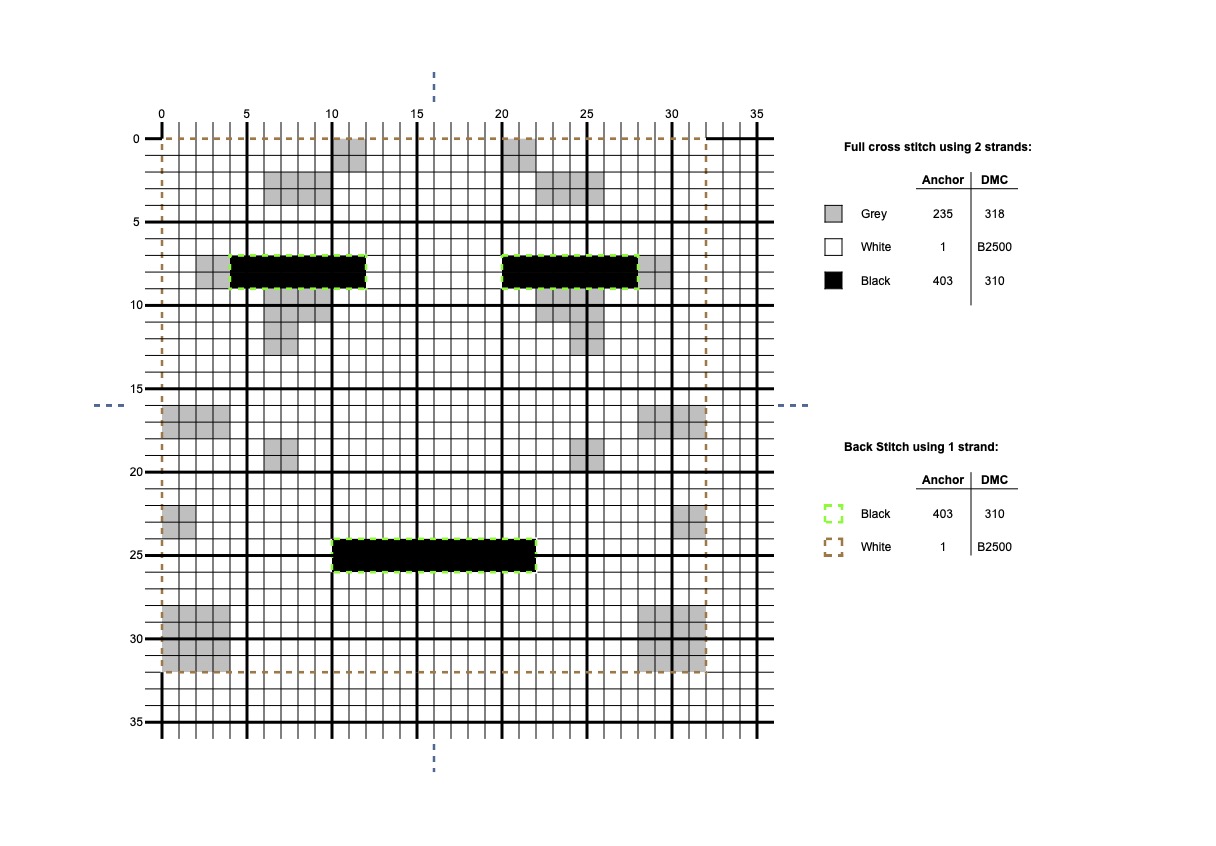 Minecraft Block Cross Stitch Pattern: Ghast Block, Small Size with Symbols