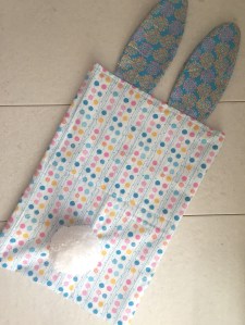 I wanted to make a bag for putting some Easter eggs in and wanted to do something a bit different to a plain tote bag, then I had an idea of using bunny ears instead of normal handles and a bunny handle tote bag was born!