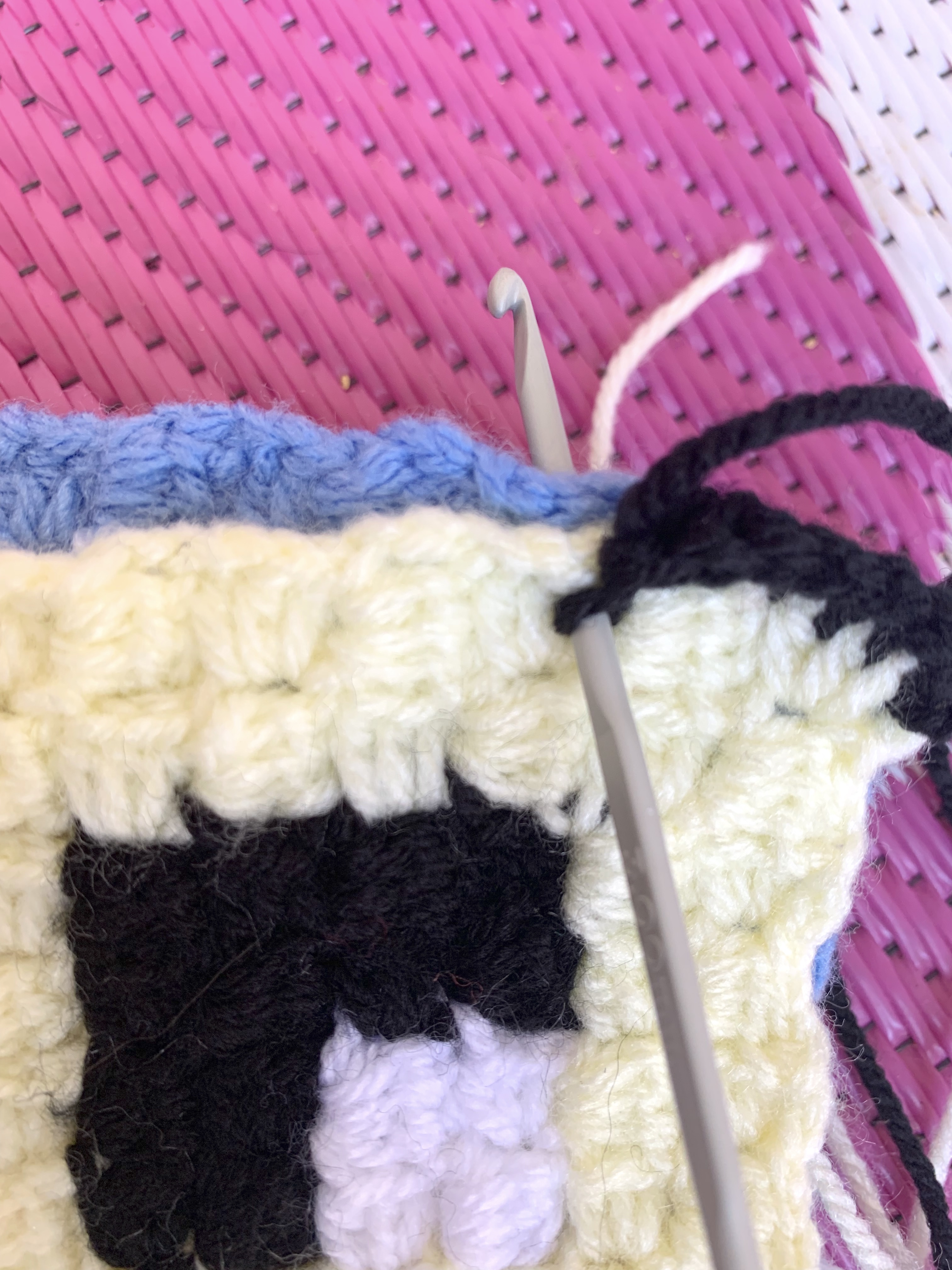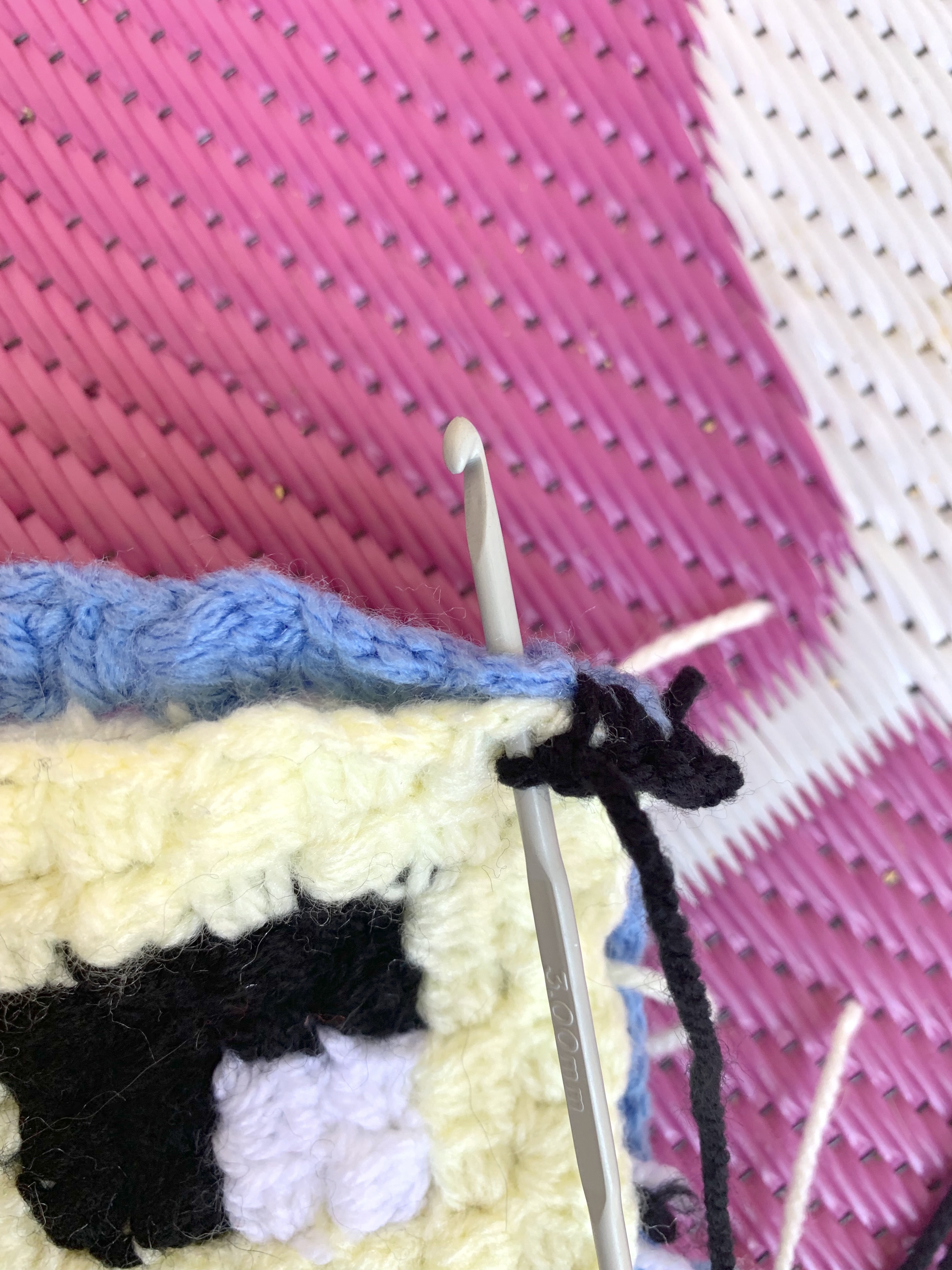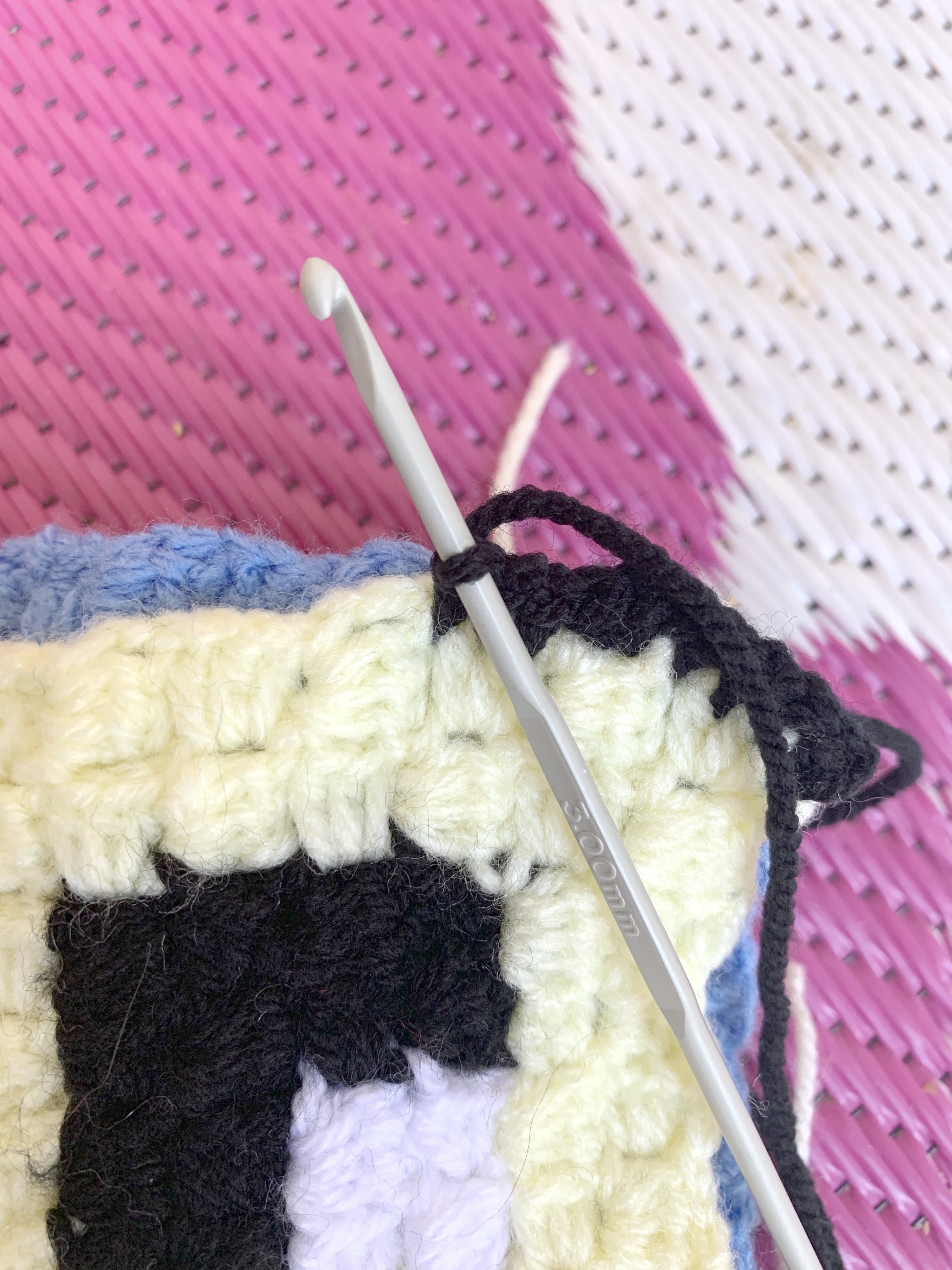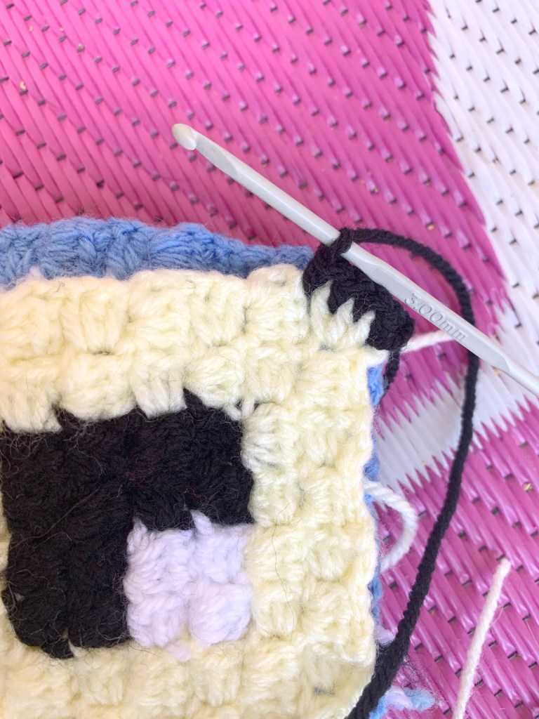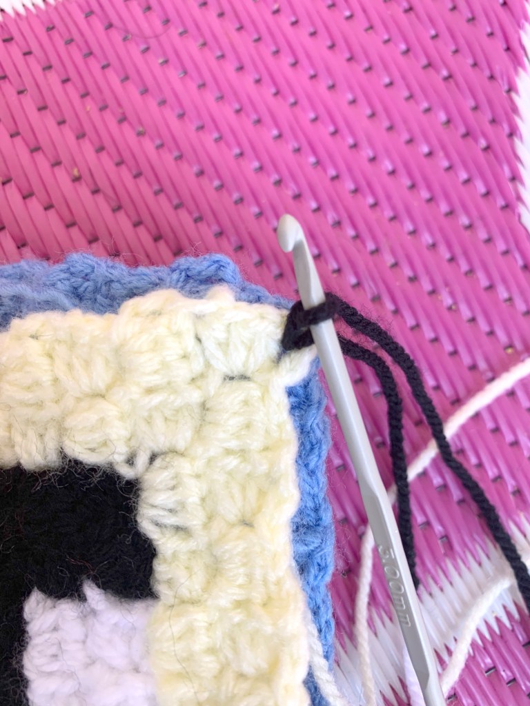 Using a 3.5mm crochet hook and black wool (or a different colour if you prefer).