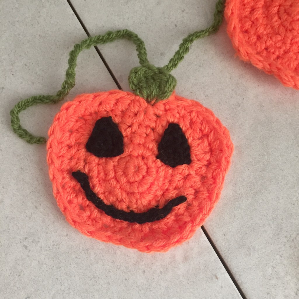 You can also use the Halloween pumpkins from this bunting to make a different crochet Halloween bunting with a few more crochet Halloween designs, a some crochet Halloween coasters, crochet Halloween themed wall hanging or a crochet Halloween themed table mat. I also have a pattern for a fabric version of this pumpkin bunting too!.