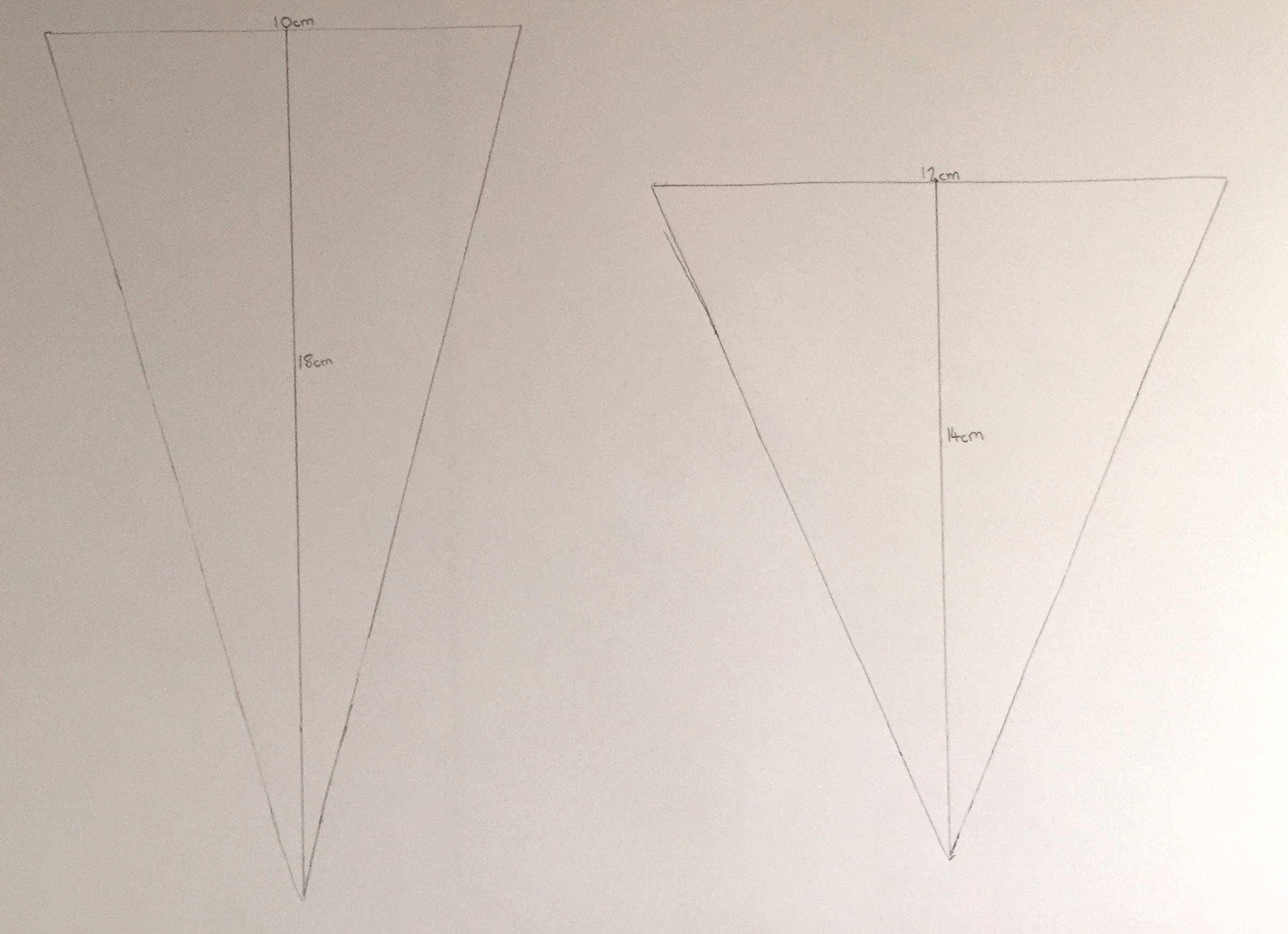 - Cut out the triangle paper bunting templates, then make a second paper template for the largest bunting triangle and cut along the dashed line – this will form the front bunting piece and the whole piece will make the back. Also draw a template for the monster teeth/eye details and cut out.