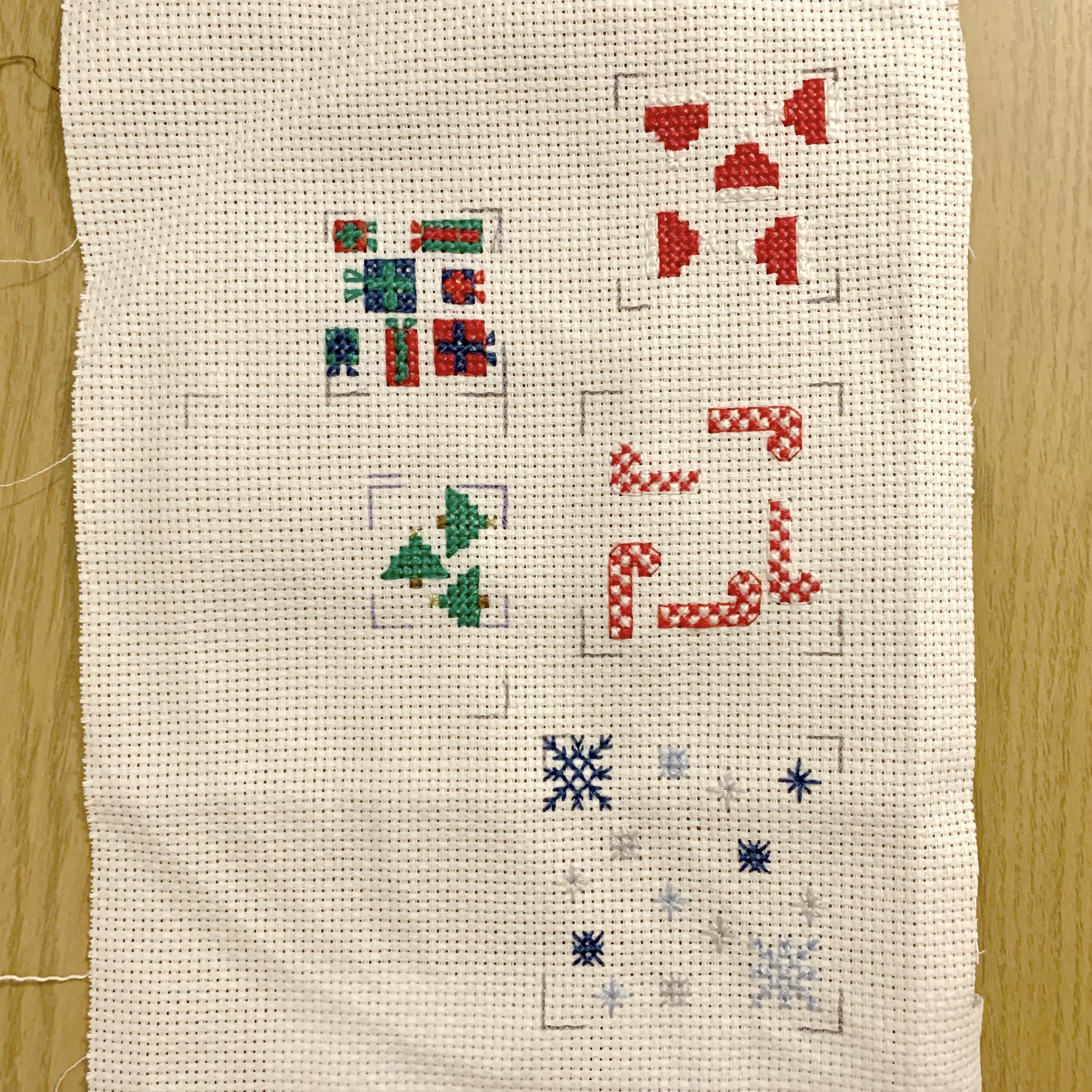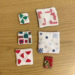 Fabric Christmas Tree Decorations With Cross Stitch Christmas Design Details – Part 1