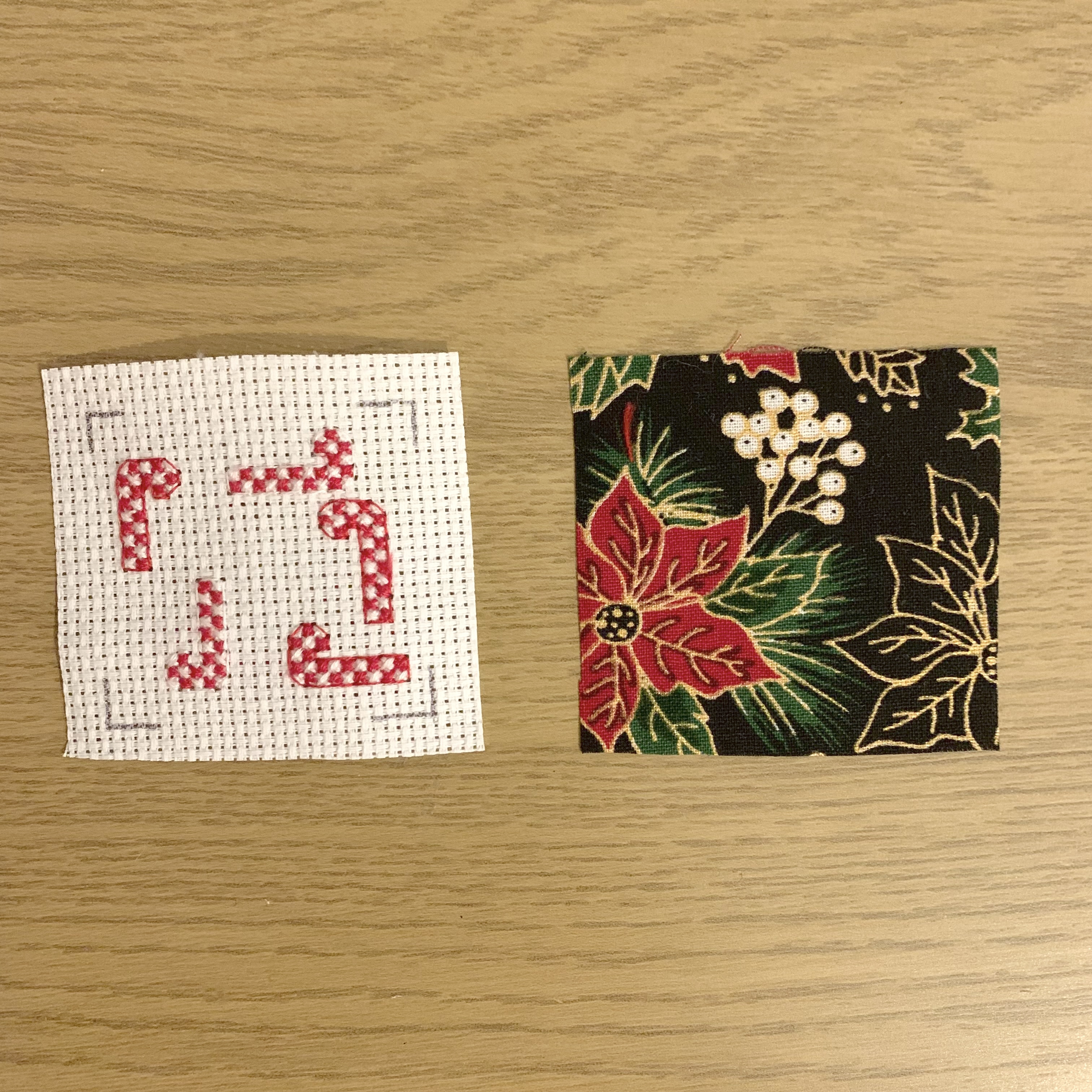 - Cut out squares of the corresponding sizes from the fabric for the backing piece of each cross stitched square.