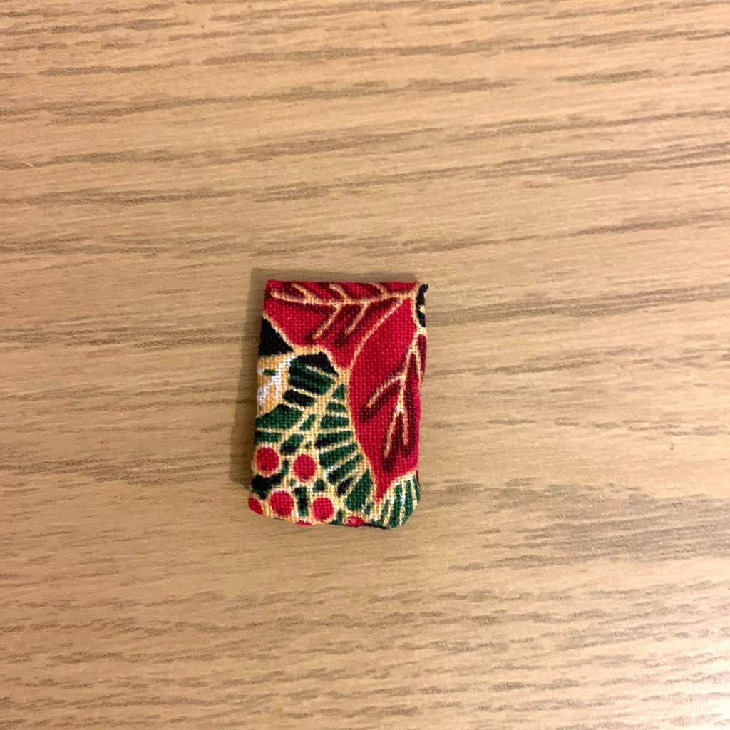 - Starting with the smallest square fold up the bottom point and sew to secure, next sew a button onto the folded part of the square. Repeat with the remaining squares.