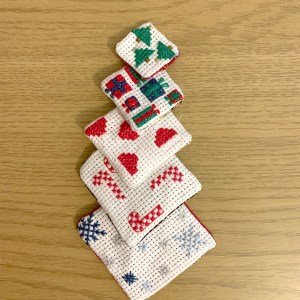 Now that Halloween is finished it is now time to get started on the Christmas makes for this year – otherwise I am going to run out of time for all the makes I have planned!. The first Christmas make complete this year is a twist on one of my favourite Christmas sewing makes – a folded fabric Christmas tree decoration and the twist I have added is instead of using just fabric for the front and back of the squares I have used fabric on one side and have completed. cross stitch design for the other. A sewing tutorial for the original version of this folded fabric Christmas tree I made is also available if you don’t want to add the twist of cross stitch details. I opted to use a different cross stitch design for each of the folded squares but you could choose to use just one of the designs on all of the squares or choose a different colour scheme for the designs if you would like to use different colours to those I have chosen.